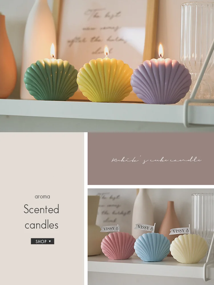 Свечи ручной работы в виде ракушки, ароматизированные фотообои, рек...