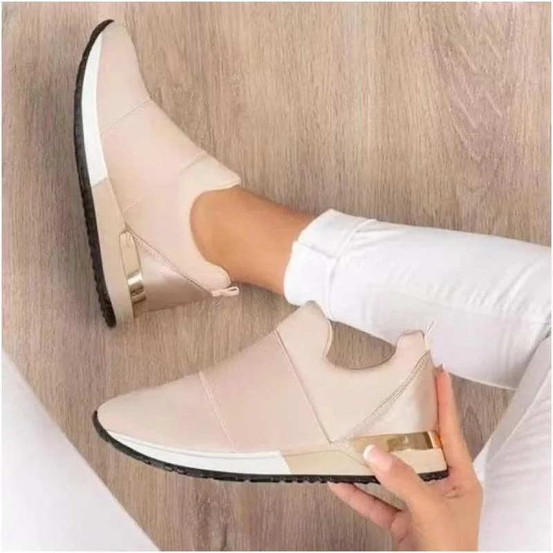 Женские летние, Осенние повседневные спортивные кроссовки, Женская дышащая Спортивная обувь без шнуровки, Женская Вулканизированная обувь на платформе с эластичными лентами