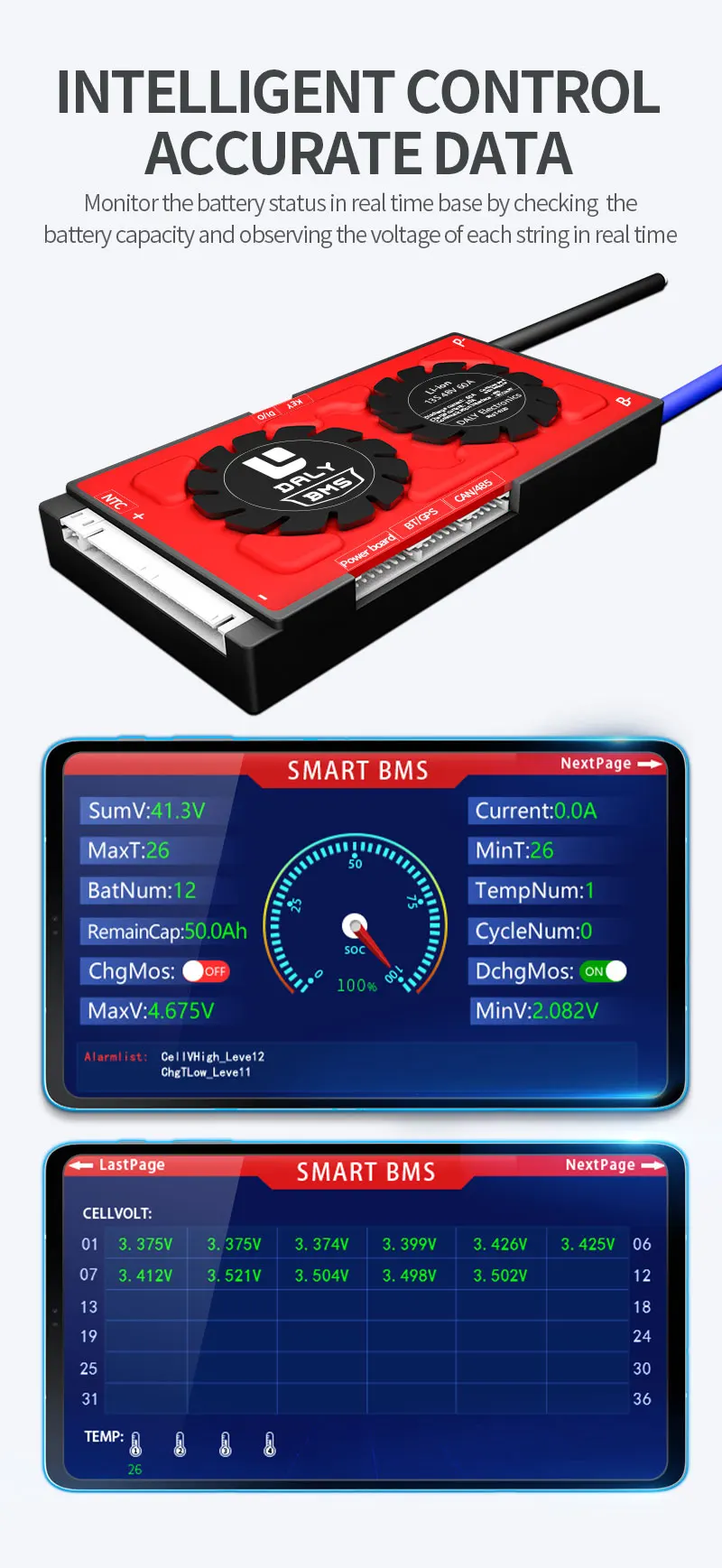 Daly 18650 smart superpower BMS 13S 48V 80A 100A 120A баланс bms дл...