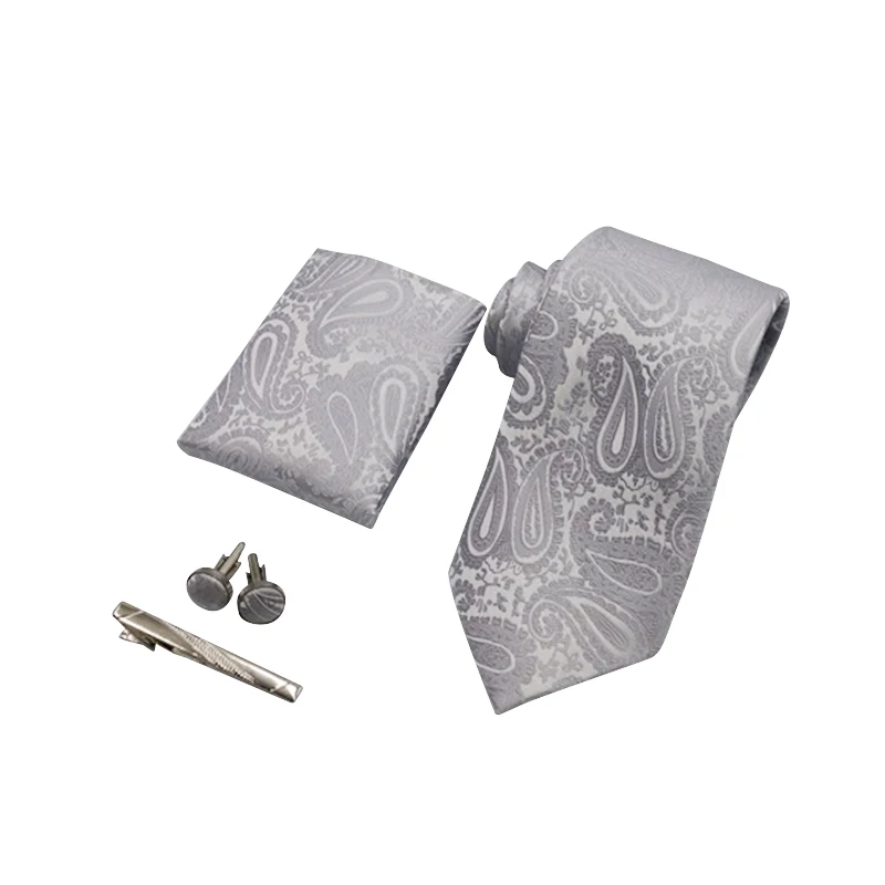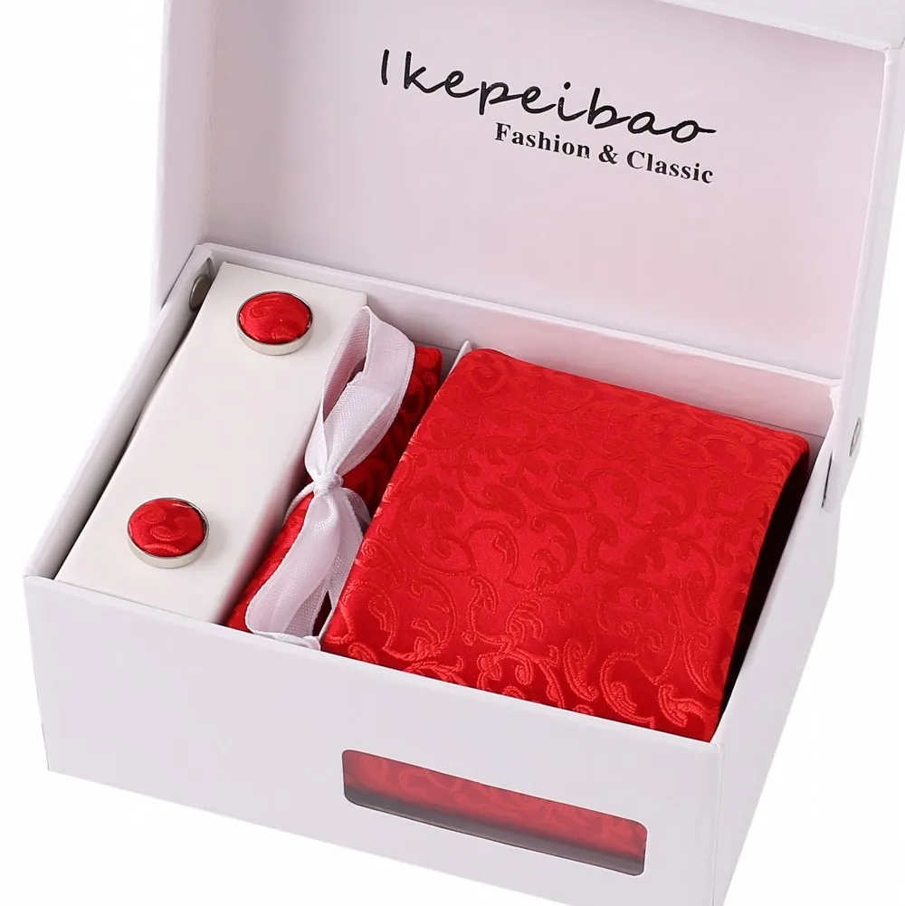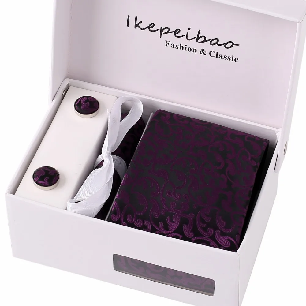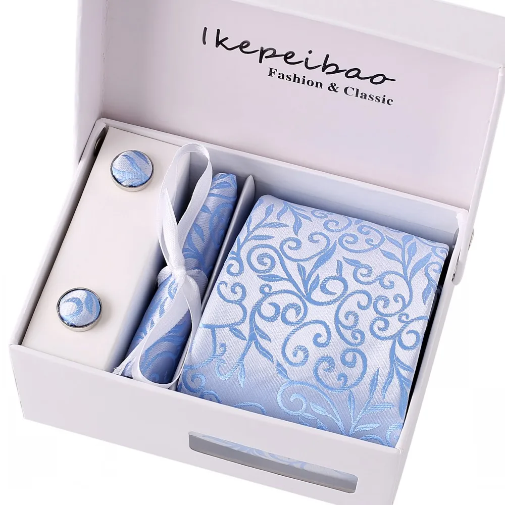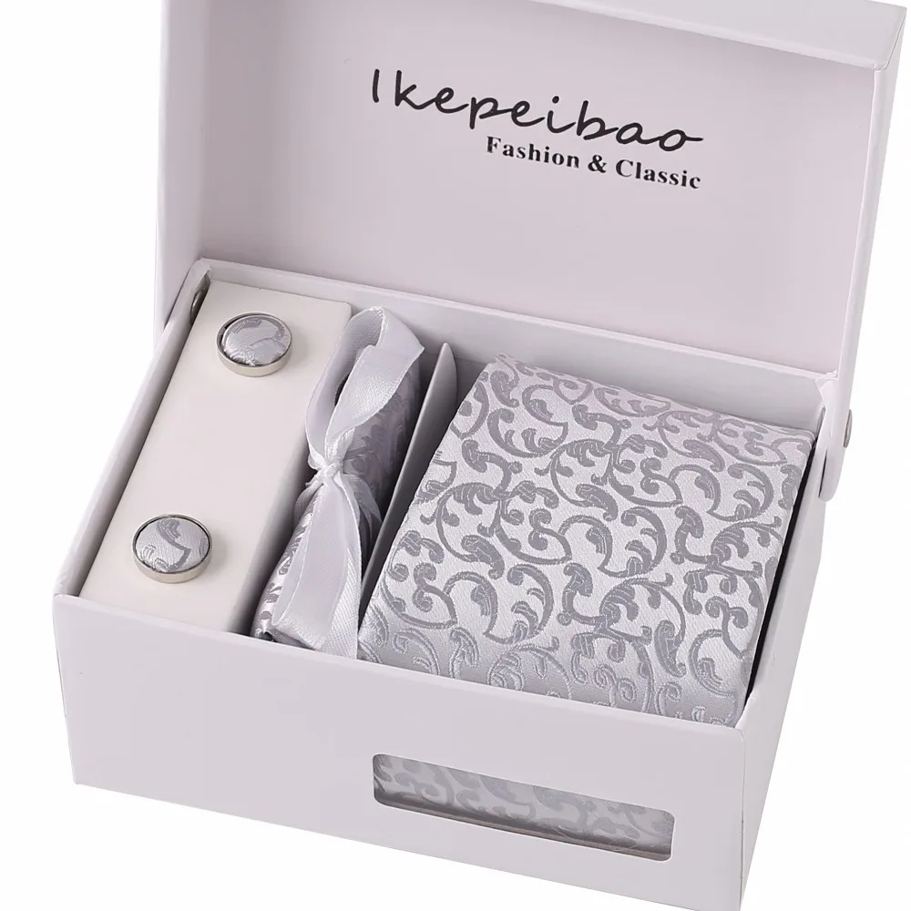 Набор галстуков Ikepeibao с серебряным галстуком, карманные квадраты и запонки, подарочный набор для мужчин, Свадебная вечеринка