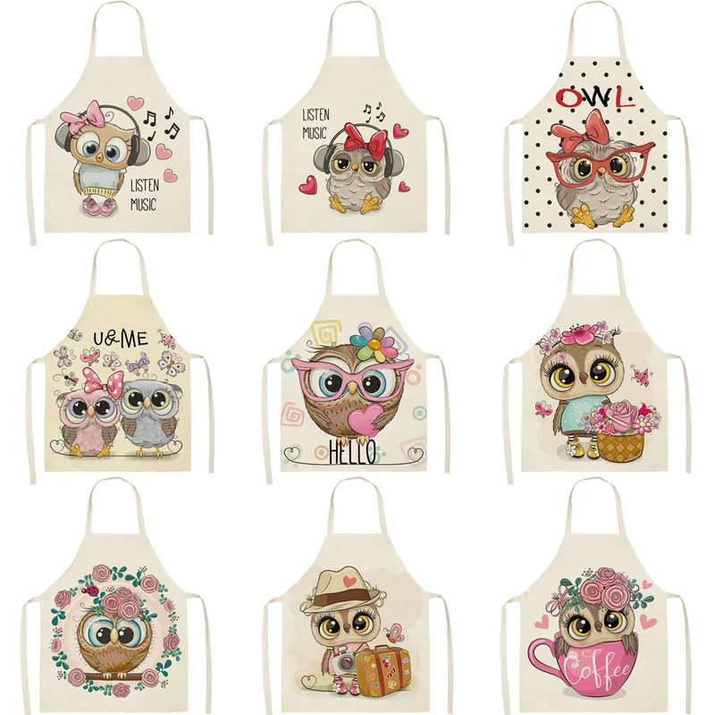 Быстро раскупаемый 1 шт. Сова Pattern Кухня взрослых фартук Без Рукавов 66x47 см хлопковые льняные Детские фартуки для приготовление, Выпекание, барбекю инструменты для уборки дома 100% новый Материал: полиэстер, хлопок и лен
