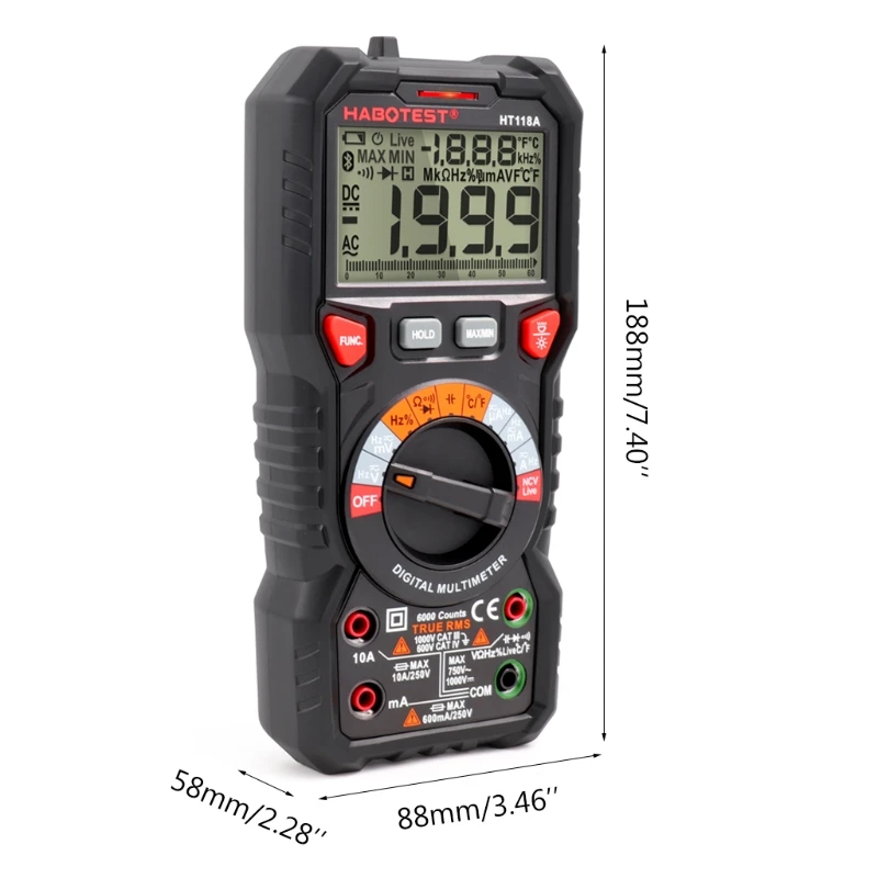 Тестовый Цифровой мультиметр HT118A, 6000 отсчетов, напряжение, ток, частота, температура, Бесконтактный индикатор напряжения