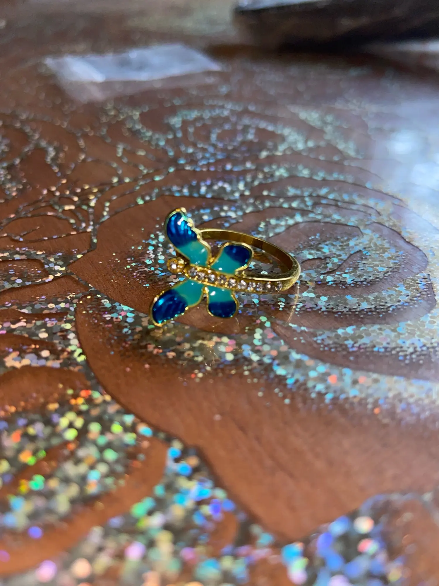 Кольцо Milangirl с синей бабочкой и насекомым крылья, эмалированное кольцо с кристаллами, обручальные кольца, свадебные кольца для женщин