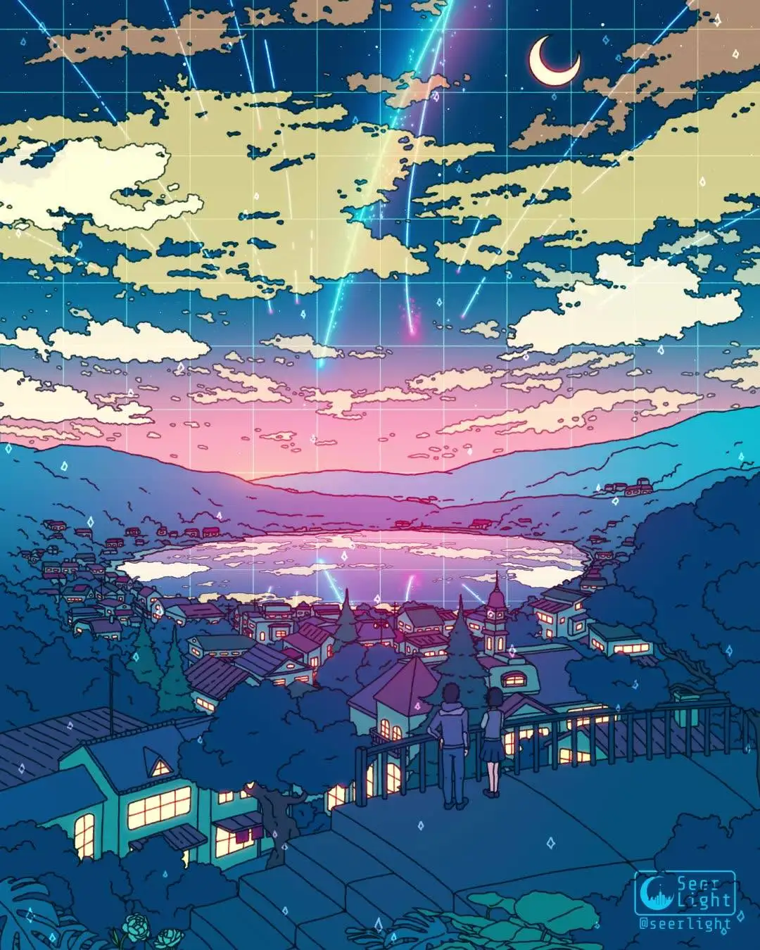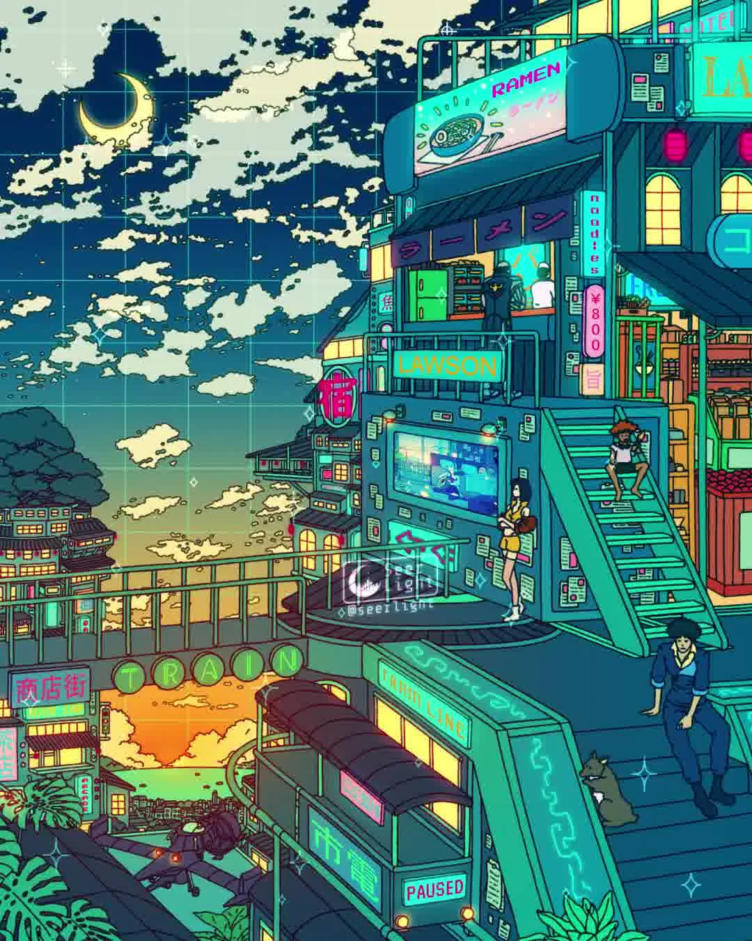 Постер Seerlight Аниме Фигурка города ночное украшение художественн...