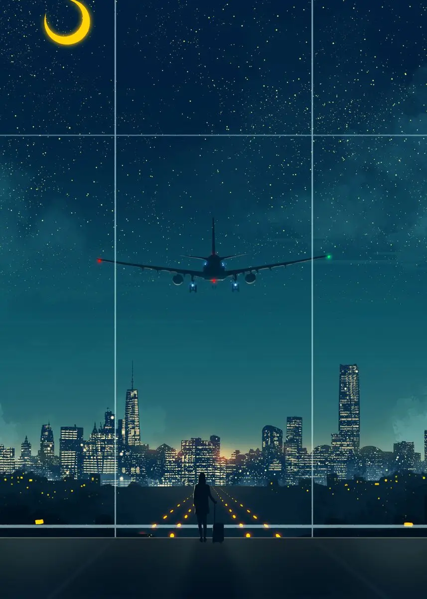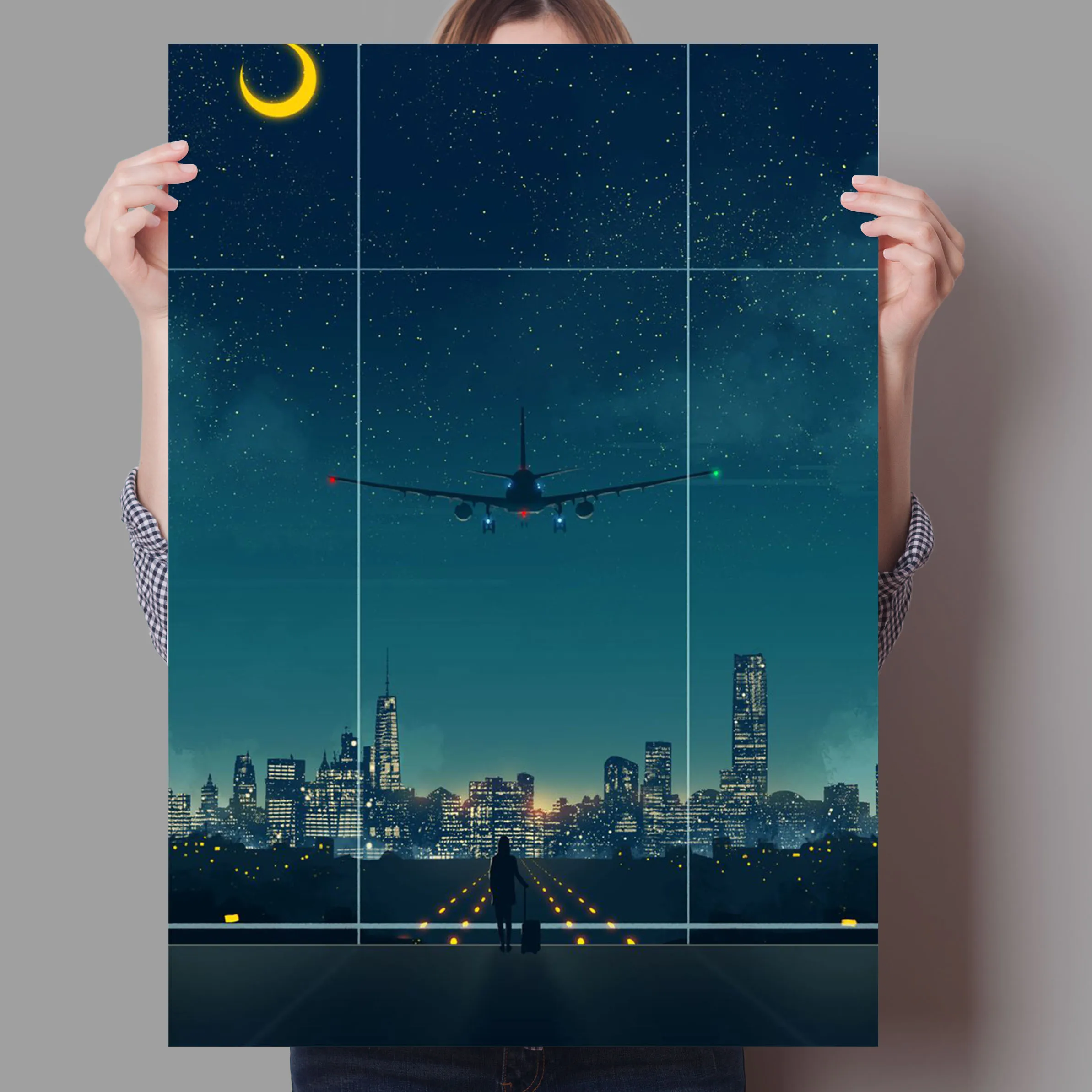 Красочный Плакат с изображением ночного города и девушки, рабочая д...