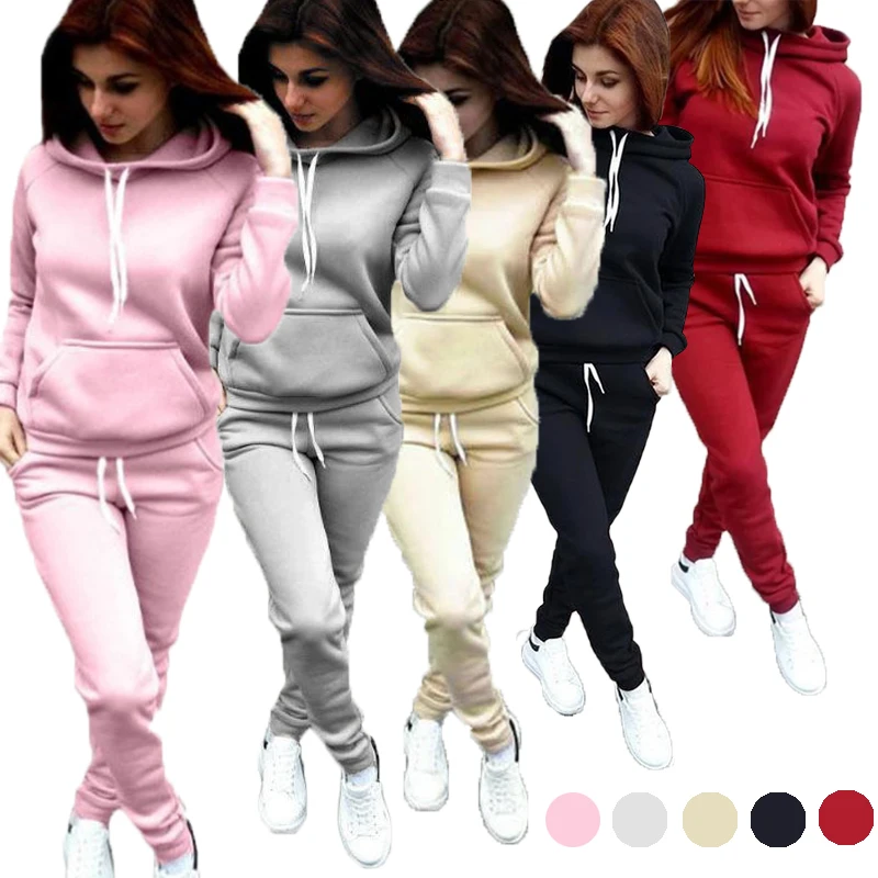 Женская флисовая водолазка с капюшоном, повседневный костюм большого размера из 2 предметов, однотонный топ и брюки на шнуровке, весна-осень