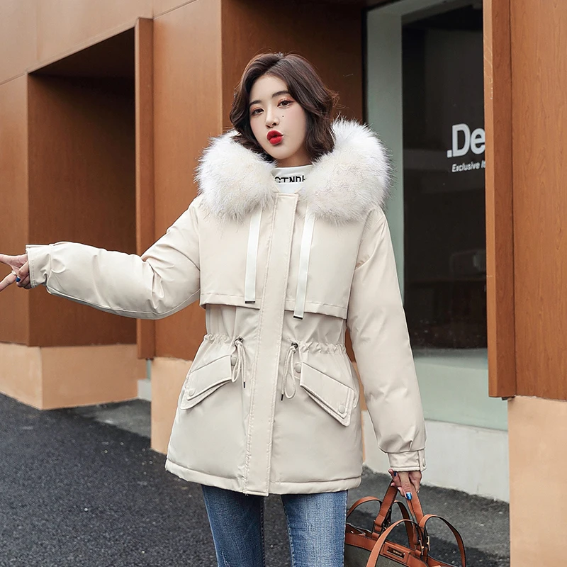 Новая зимняя Женская флисовая парка, повседневная куртка с меховым воротником, ветрозащитное плотное теплое пальто с подкладкой, зимняя женская верхняя одежда, парки, пальто