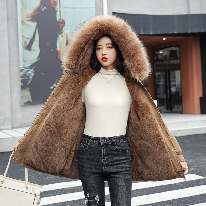 Женская куртка с меховой подкладкой, свободная хлопковая куртка с к...