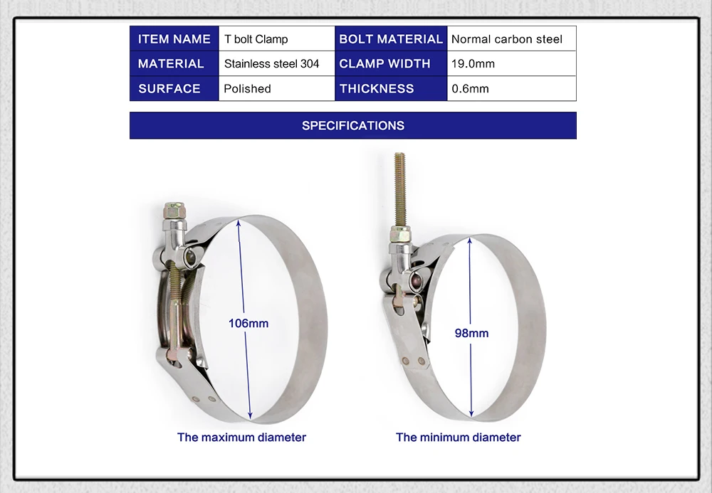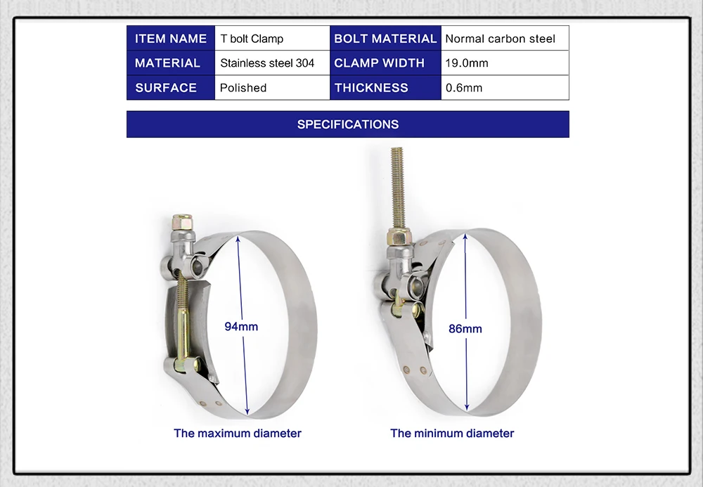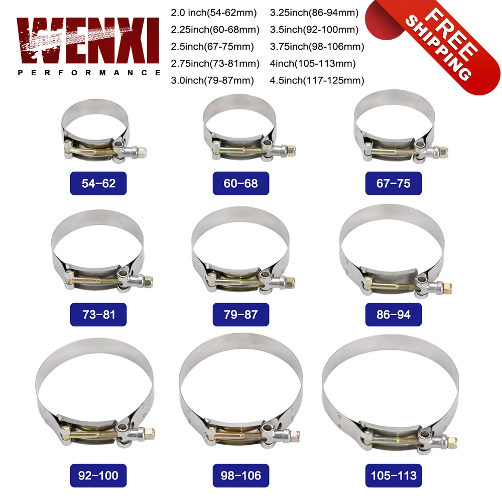 2 "2,25" 2,5 "2,75" 3 "3,25" 3,5 "3,75" 4 "4,5" дюймов Т болт зажим т шланг зажим из нержавеющей стали Т-болт турбо Silcone хомут шланга 56-125 мм Т-образный зажим