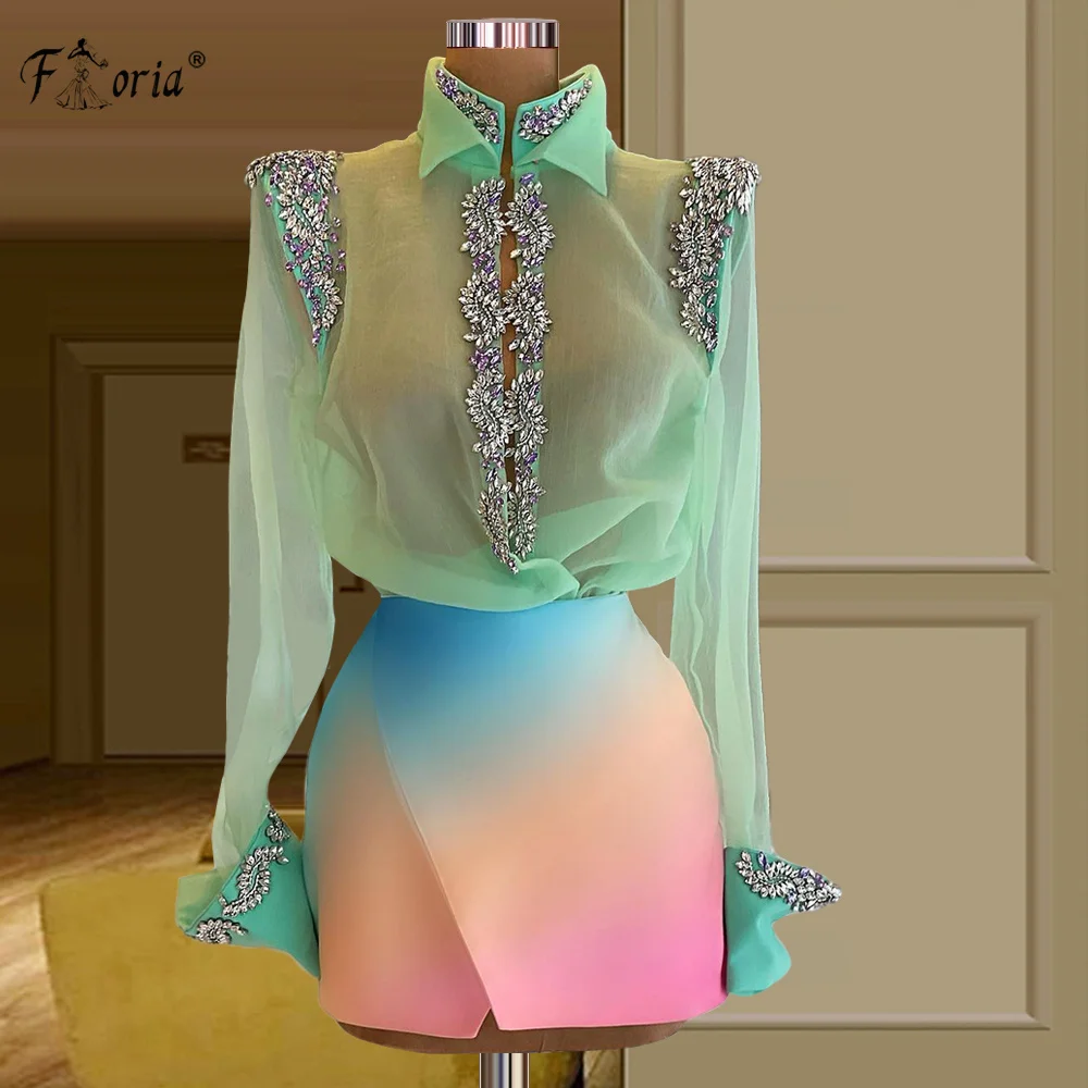 Новое поступление, короткий платье для выпускного со стразами 2021, комплект из двух предметов, платья для встречи выпускников, блузка с длинным рукавом и мини-юбка с завязкой и высокой талией