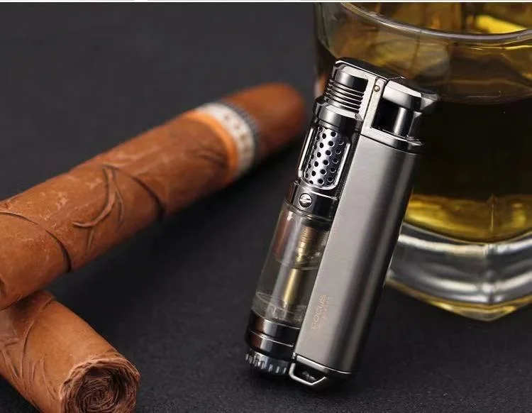 Зажигалка для сигар с видимым газовым окошком, струйная Бутановая металлическая турбо-зажигалка, портативный пистолет-распылитель 1300 C, ветрозащитные трубки, гаджеты для мужчин