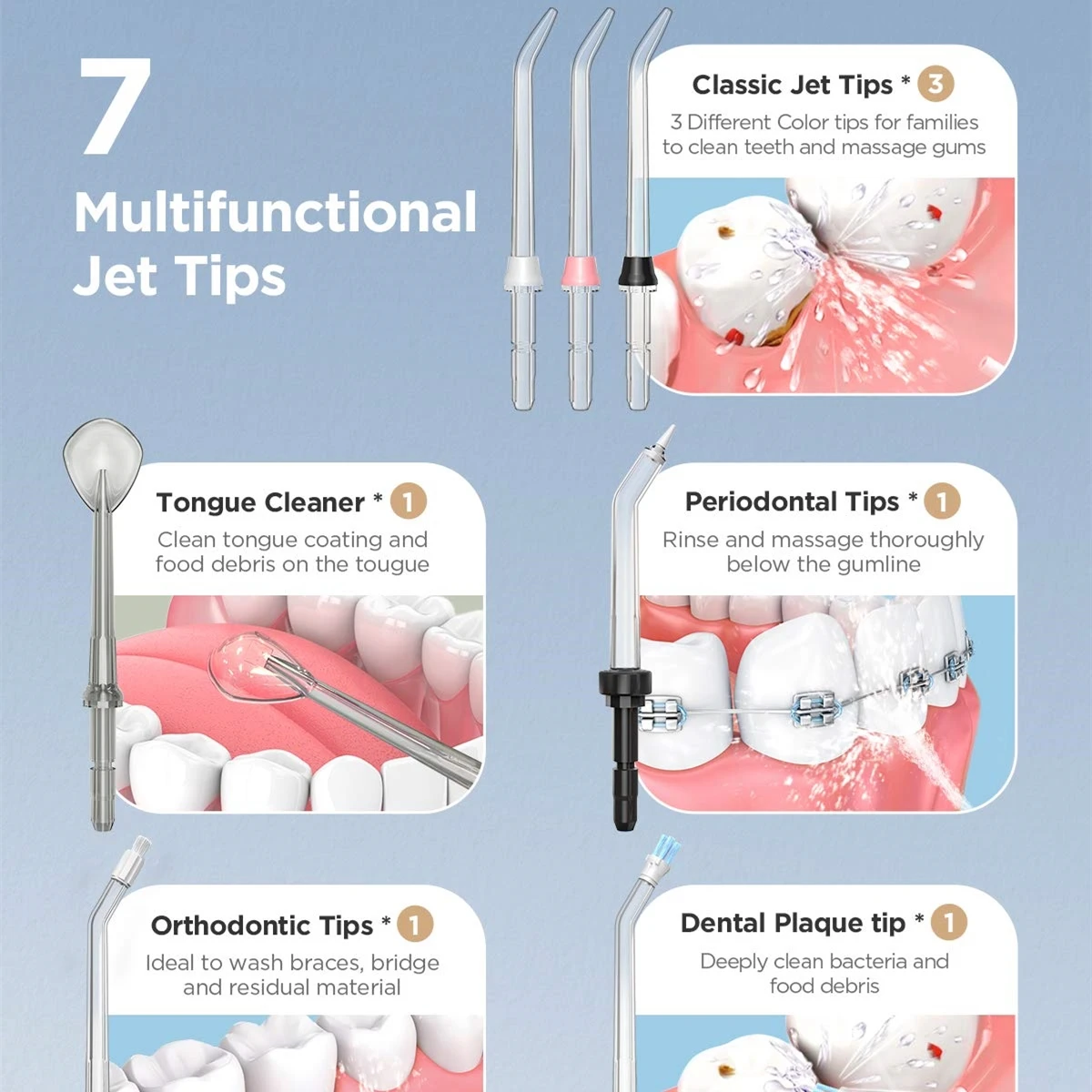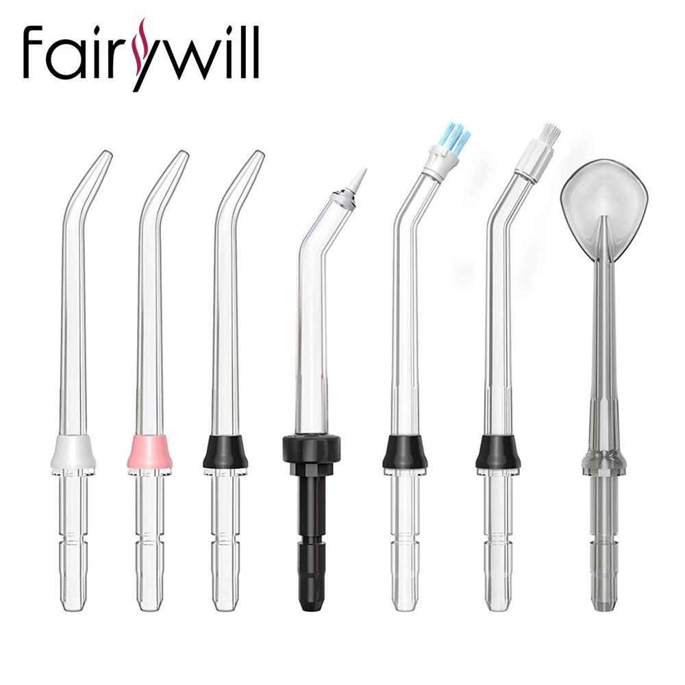 Fairywill 7 шт. водный Флоссер для FW169, 4 цвета, сменные наконечники для всей семьи, ортодонтический наконечник для чистки языка