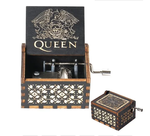 Деревянная резная винтажная Музыкальная шкатулка с ручкой, подарок на свадьбу, День Святого Валентина, Рождество, день рождения, богемный Rhapsody (Queen)