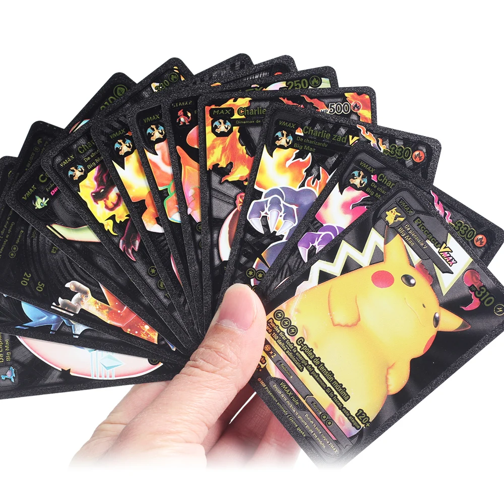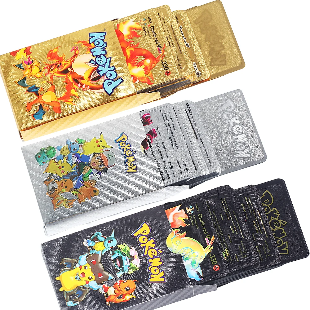 54 шт., металлические золотые карты Pokemon, золотые буквы, испанскиеанглийские игральные карты, металлические карты, Charizard Vmax, Gx Series коробка для карточных игр