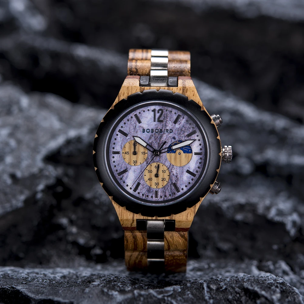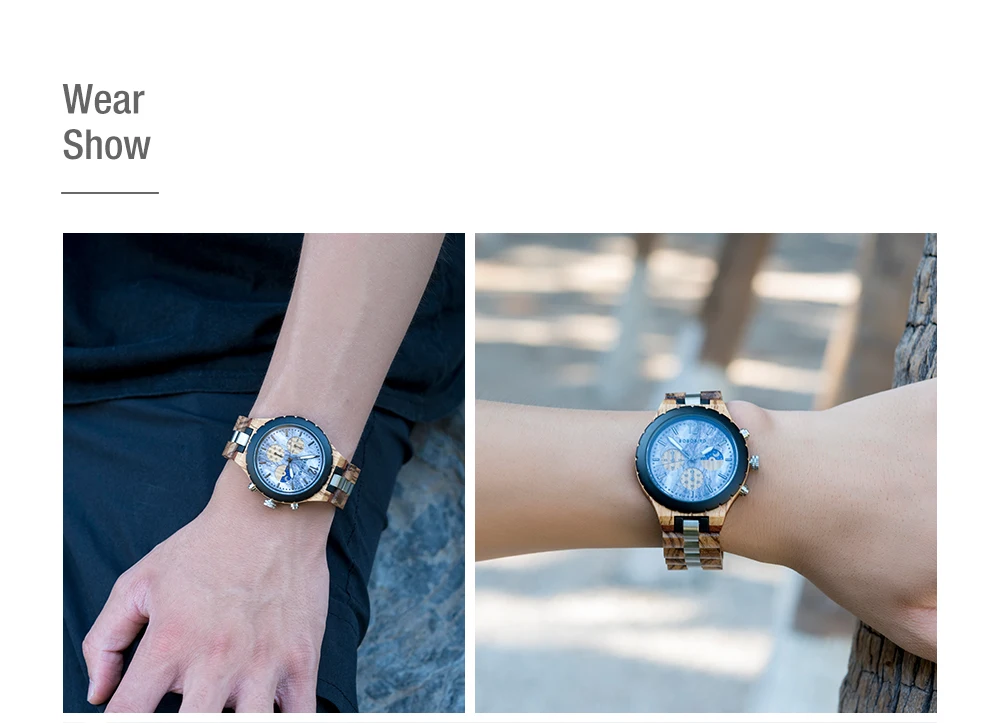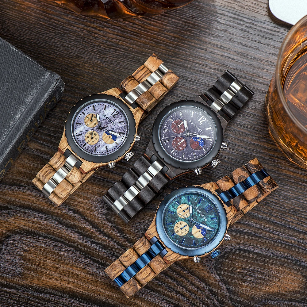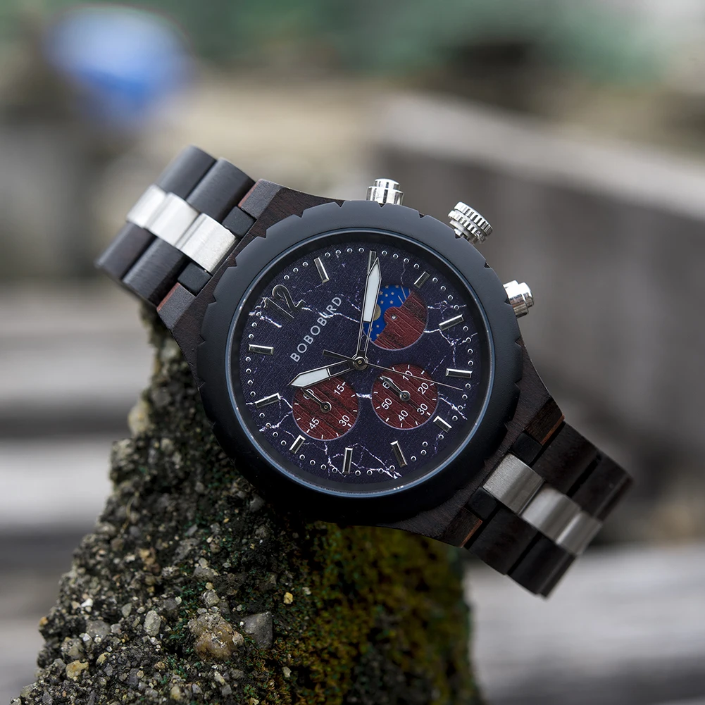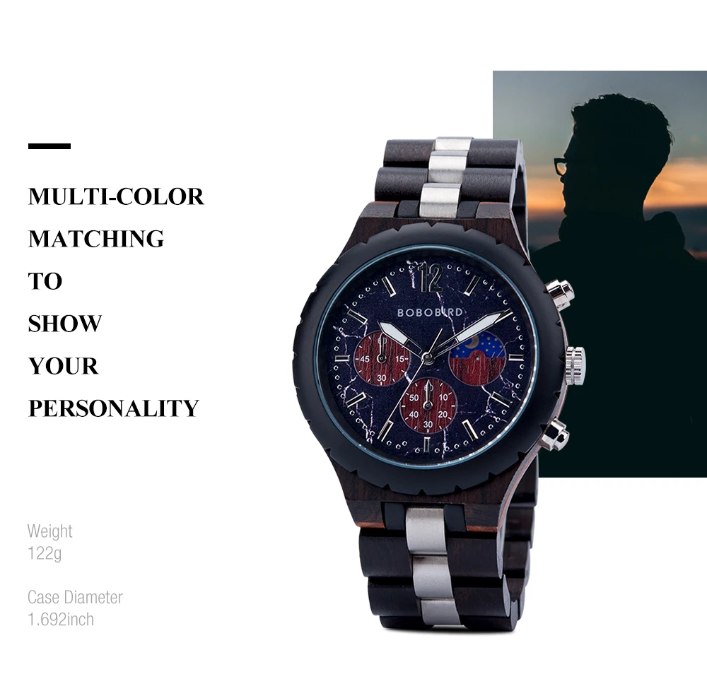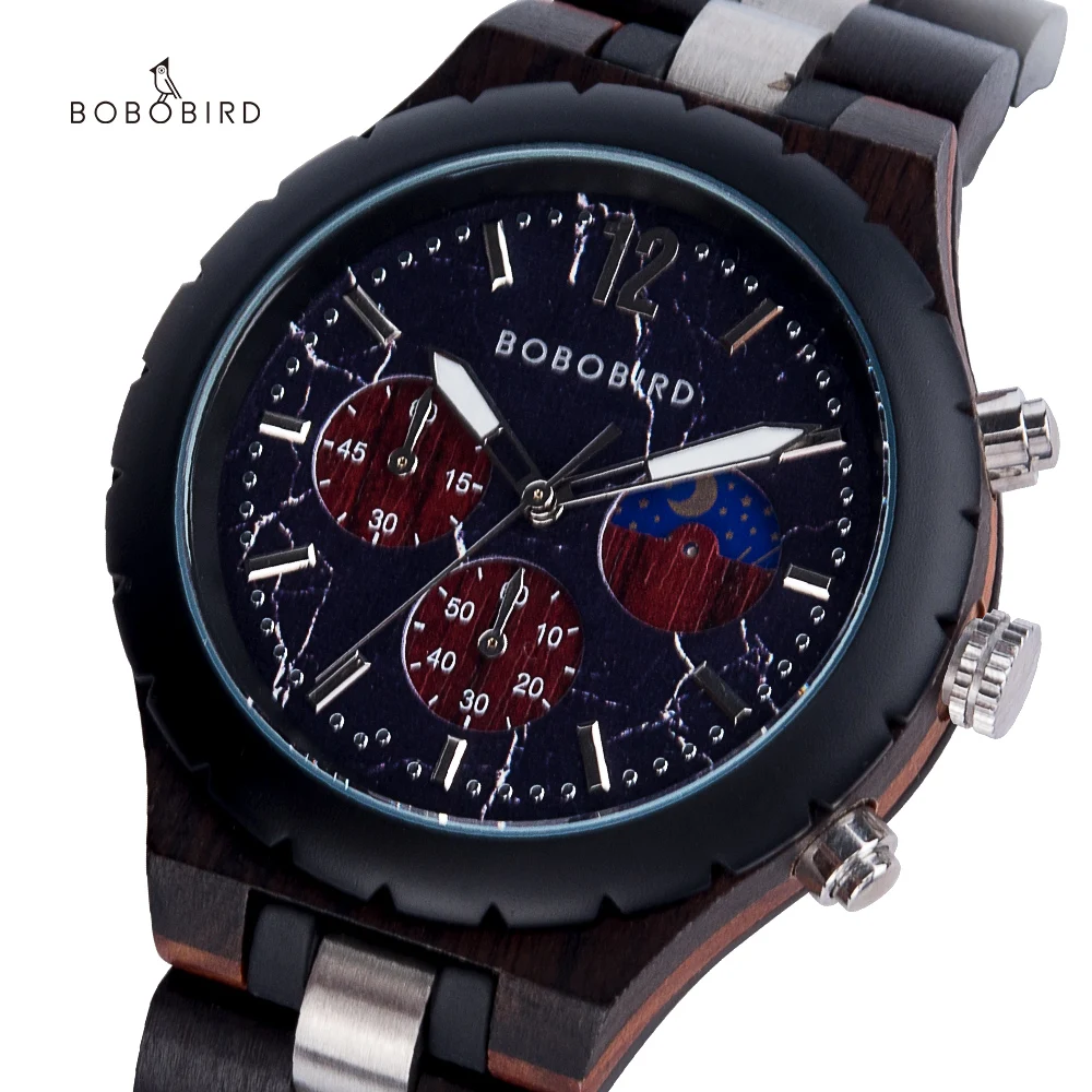Мужские часы BOBO BIRD, роскошные модные деревянные наручные часы с кварцевым механизмом, светящиеся часы, дневной и ночной дисплей, отличный подарок, relogio