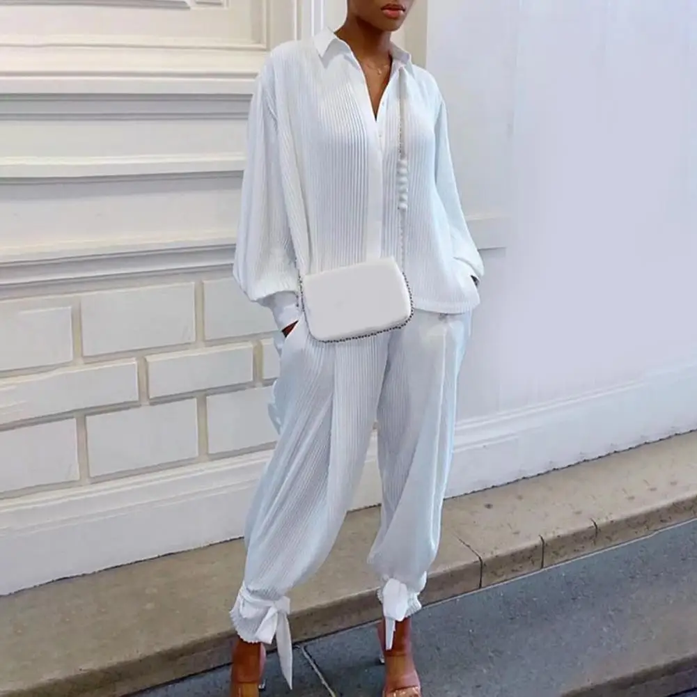 Женские плиссированные брюки Bella Philosophy, белые широкие брюки, модные повседневные свободные брюки для офиса, элегантные длинные брюки палаццо, 2021