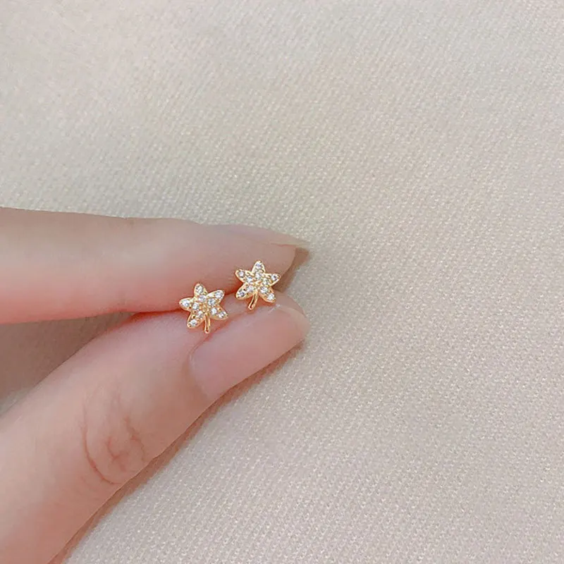 Южнокорейские серьги, новые модные инкрустированные цирконием серьги-гвоздики в виде листьев, женские высококачественные изысканные элегантные ювелирные изделия