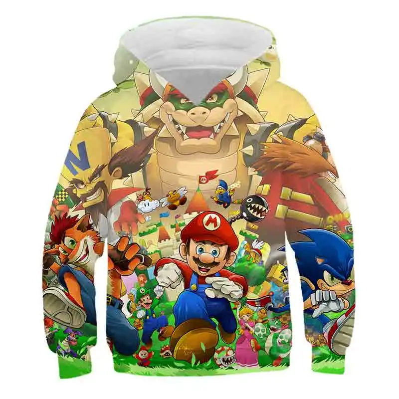3D толстовки в стиле Марио Bros, Мультяшные супер яркие классически...