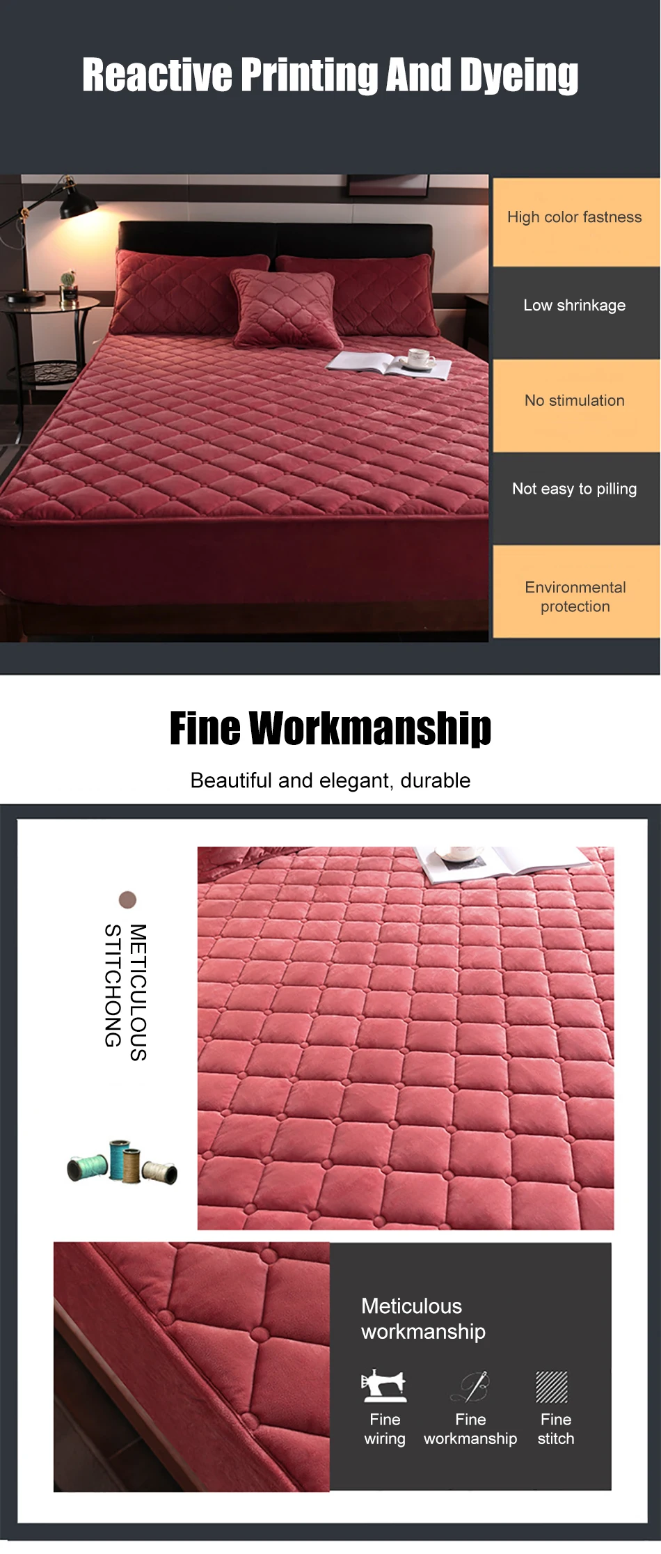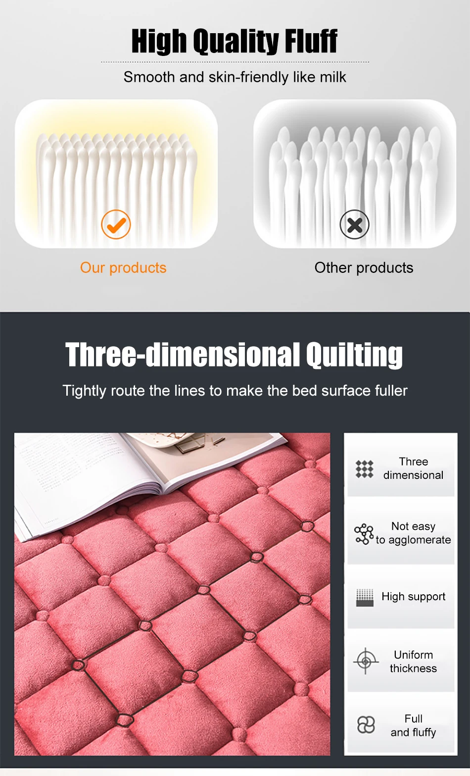3. Трёхмерное стеганое одеяло, наполнение из чистого хлопка, плотно продетое, прочно фиксированное наполнение, без смещения, долгосрочное использование в качестве нового, что делает кровать более полной и гладкой