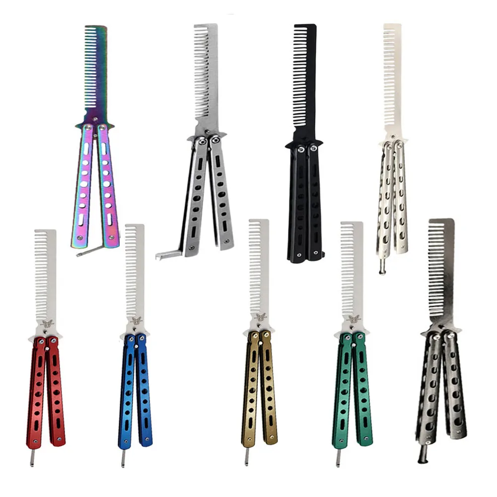 Складная расческа из нержавеющей стали тренировочный нож-бабочка расческа для бороды щетка для усов инструмент для парикмахерской укладки