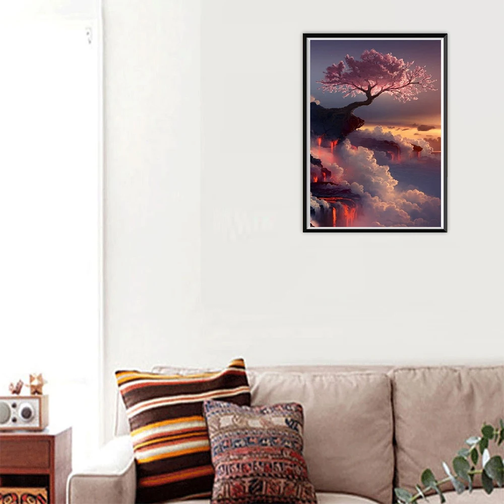 Pintura de diamantes 5D y bordado de flores de paisaje y punto de c...