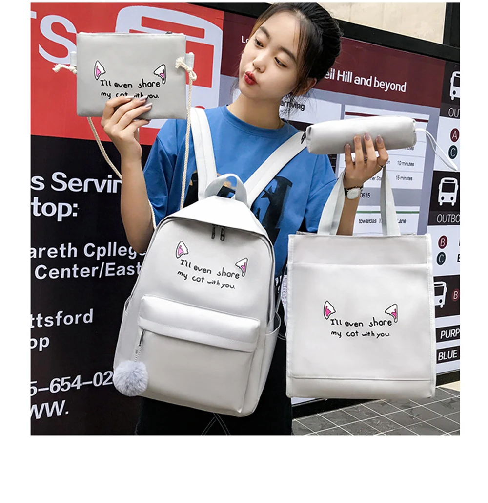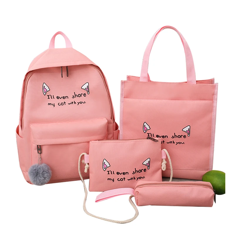Школьные ранцы для девочек-подростков, 4 комплекта, рюкзак, дорожная сумка на плечо для подростков, детский портфель, женский рюкзак