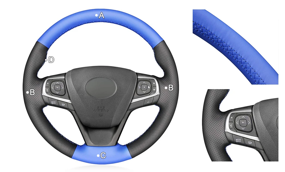 Сшитая вручную Черно-синяя кожа Чехол рулевого колеса автомобиля для Тойота авенсис Камри Verso Avalon Previa (Estima) Harrier