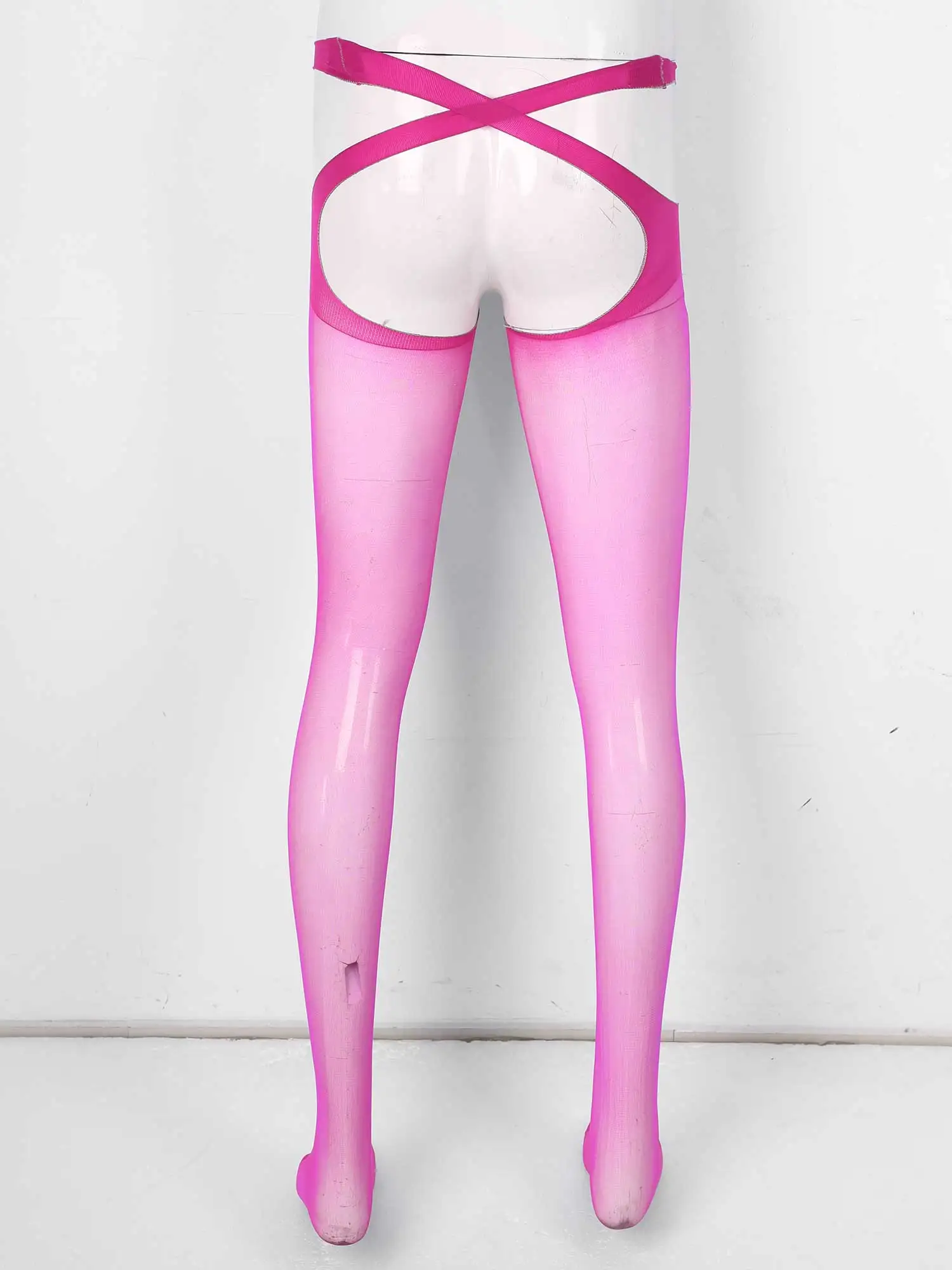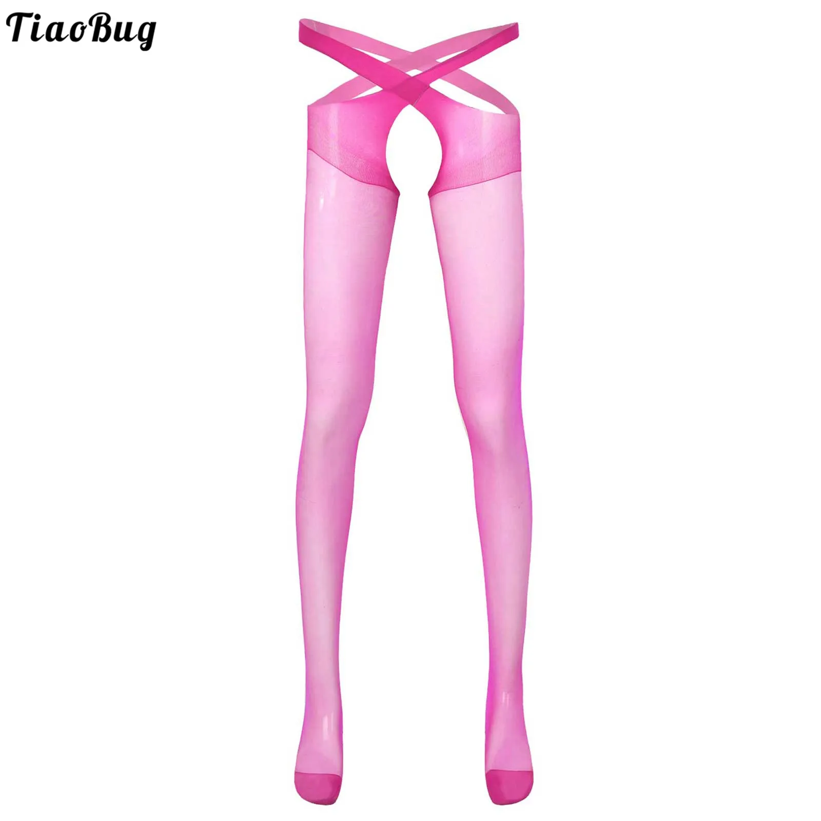 Летние мужские прозрачные тонкие колготки TiaoBug, ажурные эластичные колготки с промежностью и перекрещивающимися полосами, нижнее белье для геев, чулки