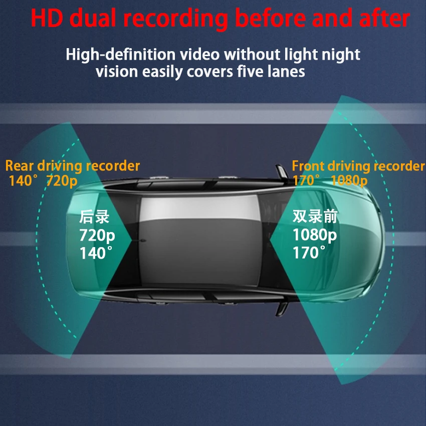 Сразу же Начните циклическую запись после зажигания, не протекающие секунды, экономьте в сегментах, автоматически обнаруживайте место для хранения и автоматически удаляйте перезаписанное видео, когда память заполненаСохранить новое видео, бесшовная петля записи зрения