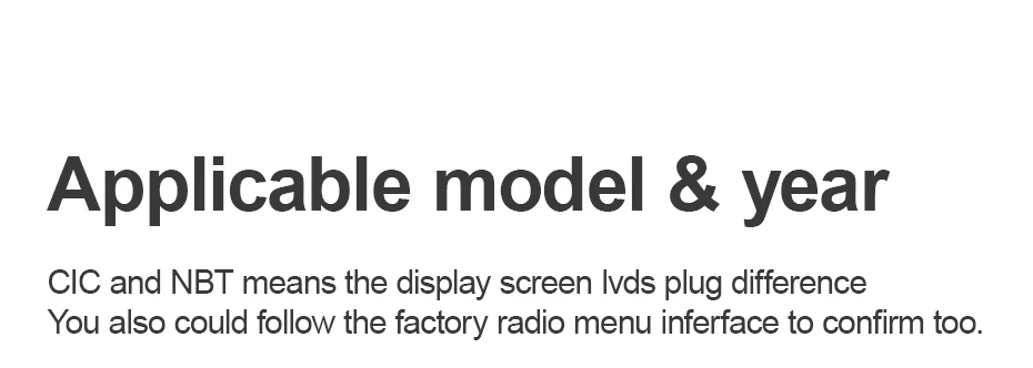 >>> Примечание: у CIC и NBT просто есть разница между штекерами lvds экрана, остальные одинаковые.>>> Выберите год выпуска автомобиля или оригинальное экранное меню заводского головного устройства.>>> CIC означает, что штекер LVDS дисплея 4pin>>> NBT означает, что штекер LVDS дисплея 6pin>>> Для BMW 5 серии F10 / F11 520i 525i 528i (2011-2012) CIC>>> Для BMW 5 серии F10 / F11 520i 525i 528i (2013-2017) NBT
