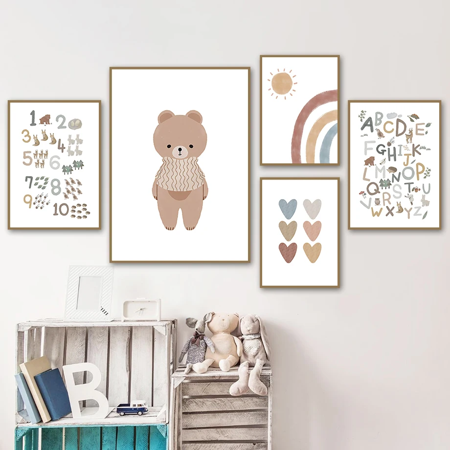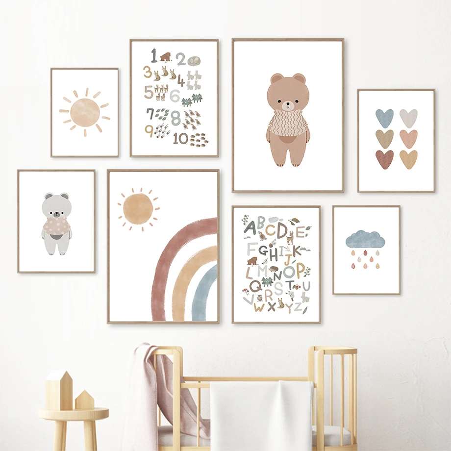 Милый медведь солнце Радуга облако любовь номер настенная Картина на холсте скандинавские плакаты и принты мультфильм настенные картины декор детской комнаты