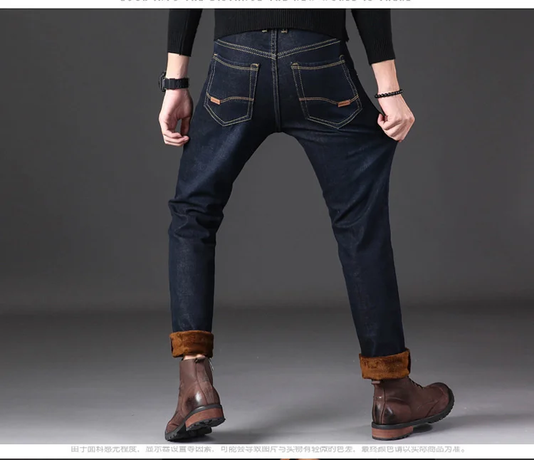 Новинка, утепленные мужские джинсы с флисовой подкладкой, зима 2021...
