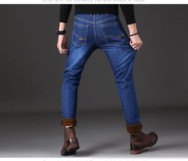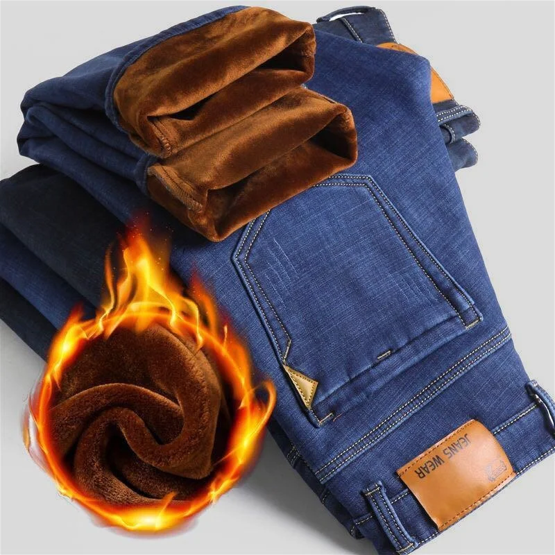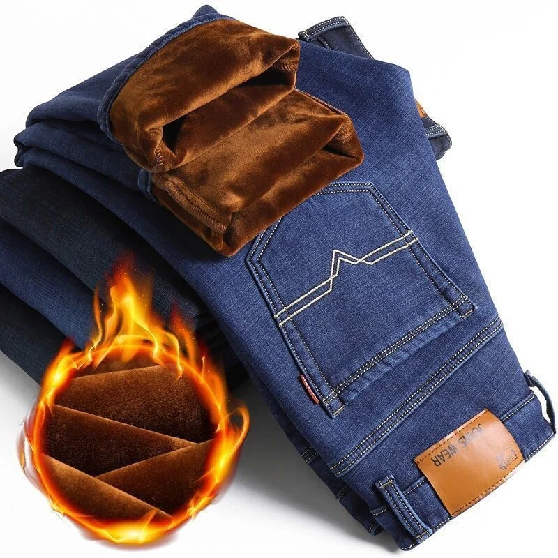 Джинсы мужские зимние с флисовой подкладкой, утепленные теплые брюк...