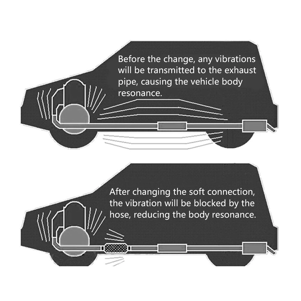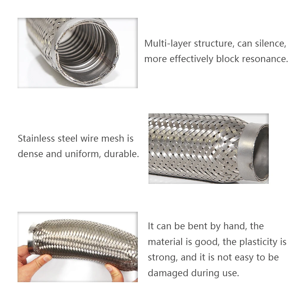 Плетение проволочной сетки из нержавеющей стали плотное и более прочное;Хороший материал, прочная пластичность, не легко повредить при использовании;Четырехслойная внутренняя сеть, которая может быть приглушена для более эффективного блокирования резонанса;Выхлопная труба из нержавеющей стали мягко соединена, внутренняя конструкция разумная, эффект лучше, и она выглядит прочной, что оказывает очевидное влияние на уменьшение резонанса выхлопной трубы.