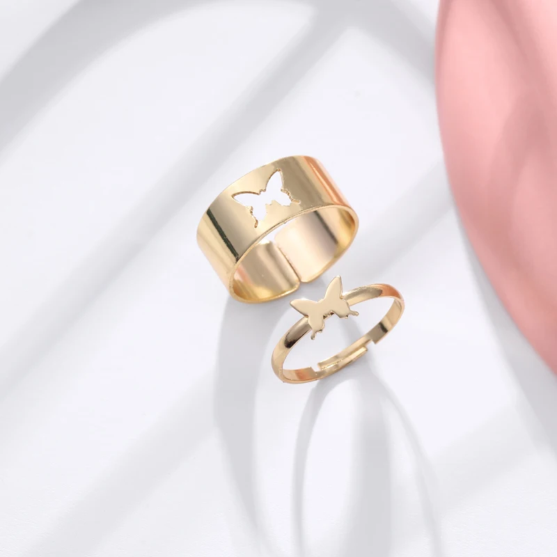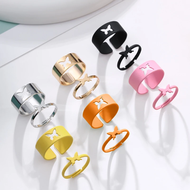 2 шт трендовые разноцветные кольца с бабочками, набор для женщин, пара, дружба, помолвка, свадьба, любовник, Открытое кольцо, Женские Ювелирные изделия, подарки
