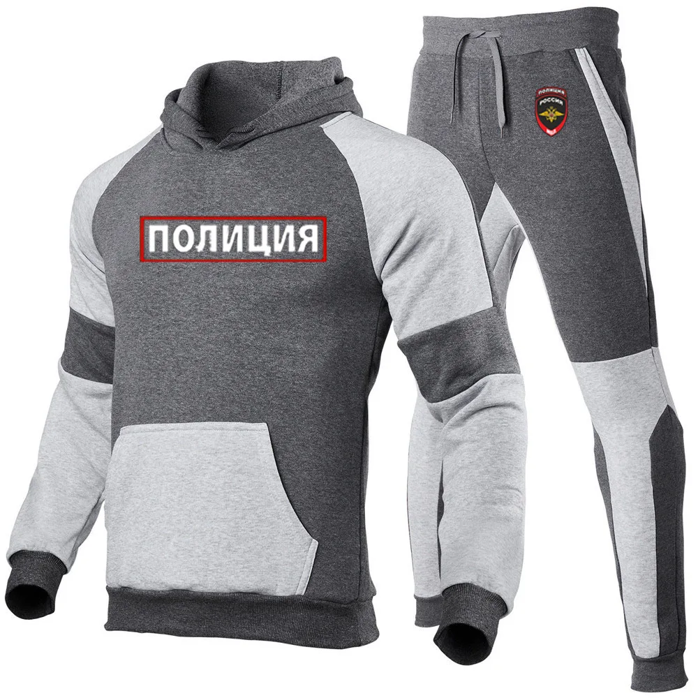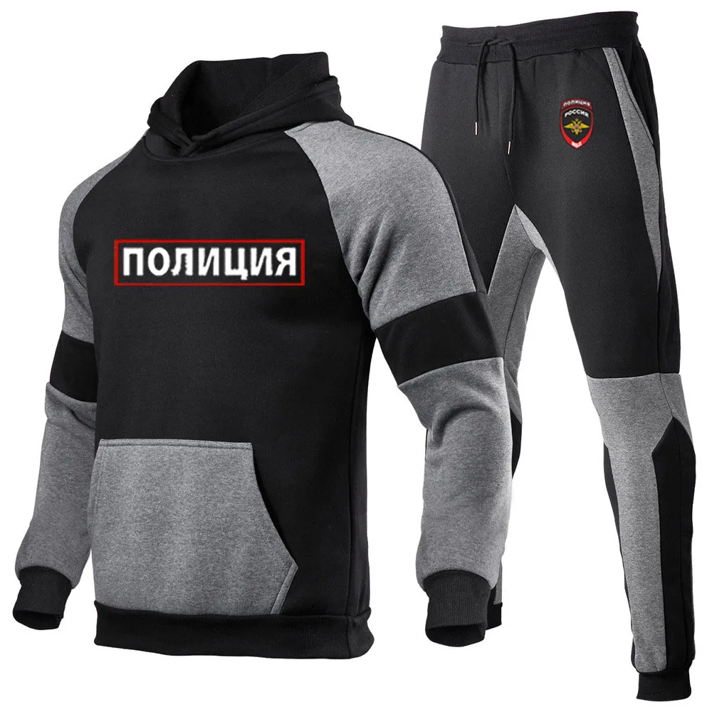 Мужской спортивный костюм с надписью полиция, черный спортивный костюм с капюшоном и штанами с надписью на русском языке, весна-осень 2021