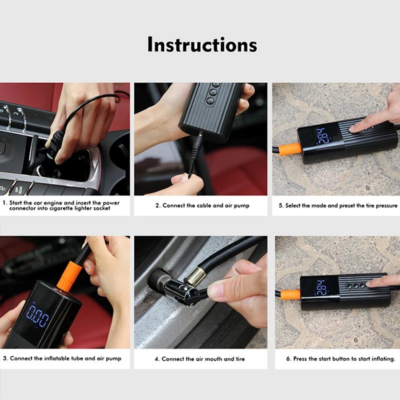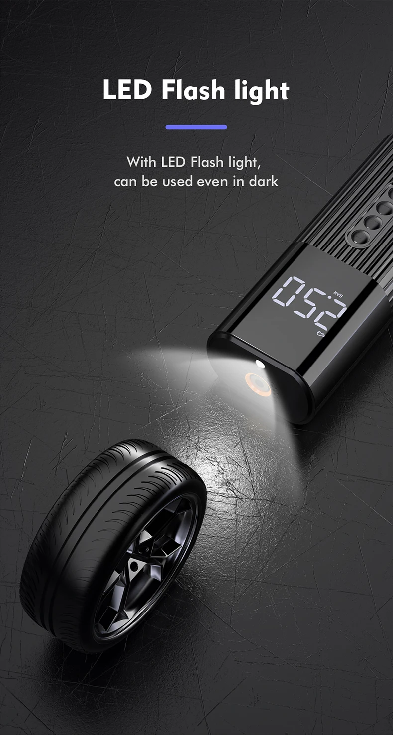 Портативный воздушный мини-компрессор 100psi, цифровой фотонасос для велосипедных шин, шарики со светодиодным освещением