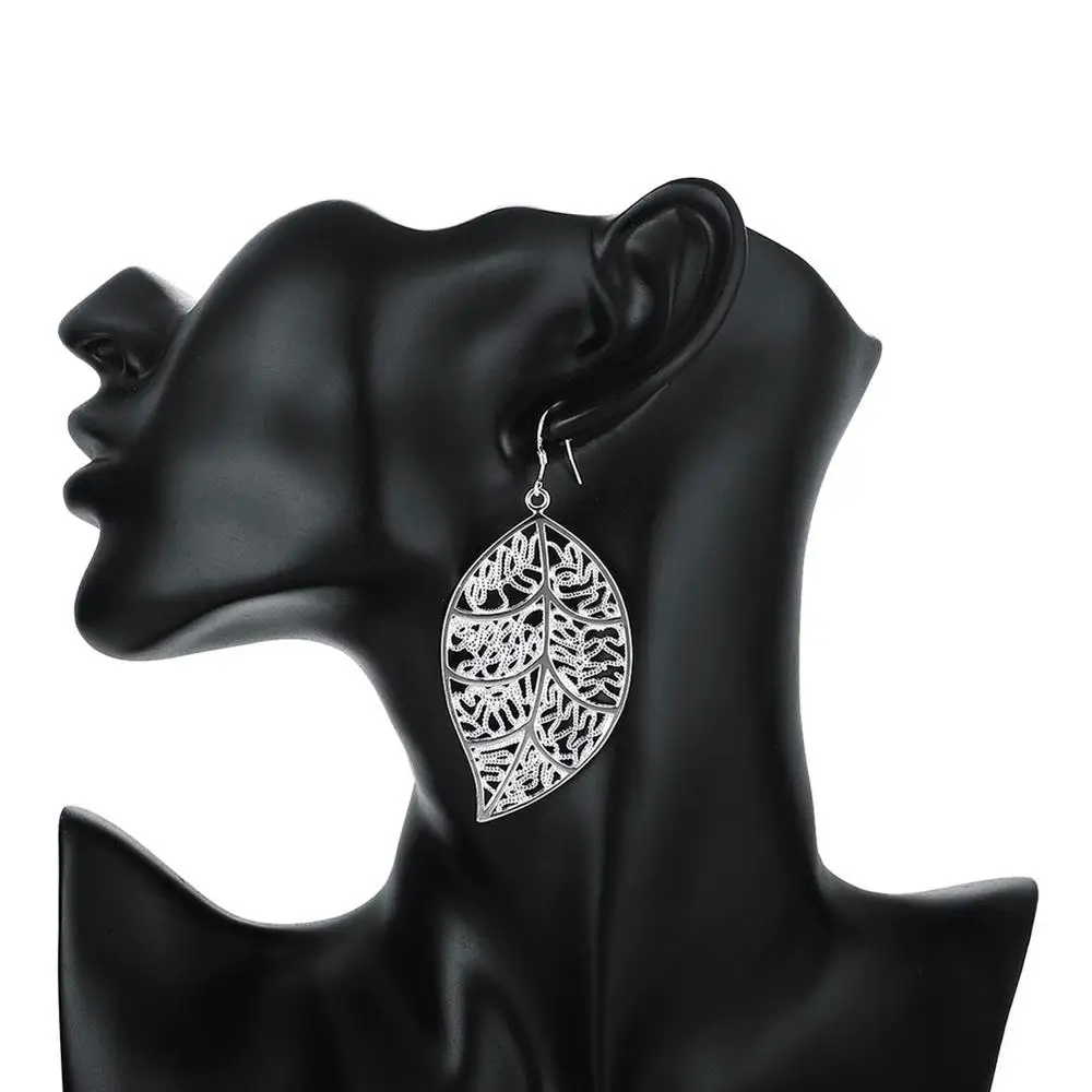 Очаровательные 925 тисненые серебряные Простые серьги-листья ожерелье серьги Модные для вечерние ринки свадьбы популярные бренды праздничный подарок