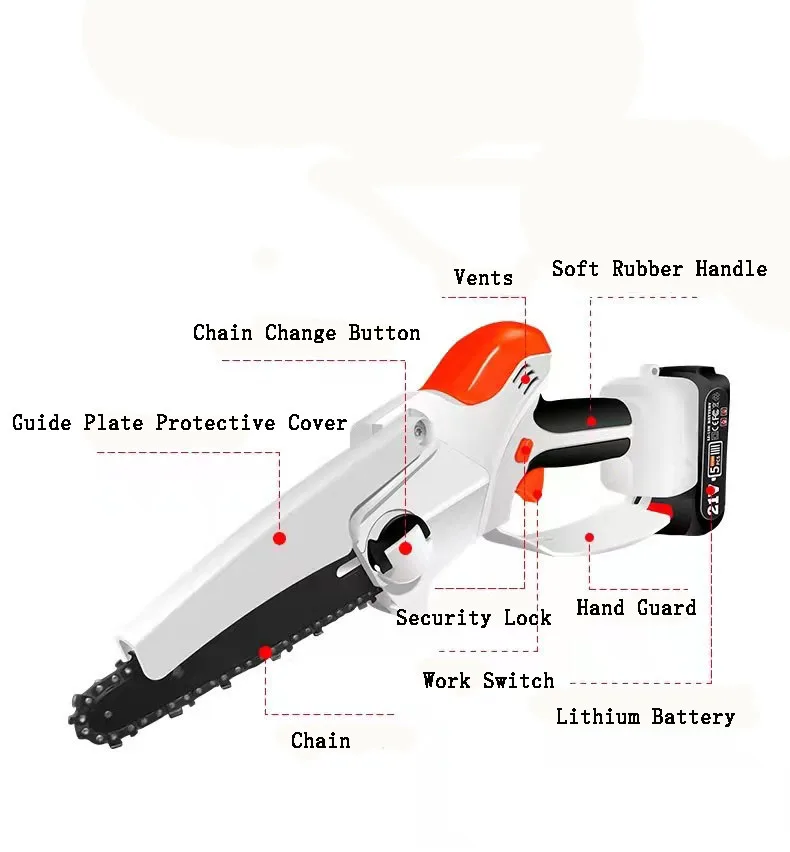 6-дюймовая портативная бензопила, 21 в, литиевая батарея, аккумуляторная стандартная бензопила с питанием от батареи