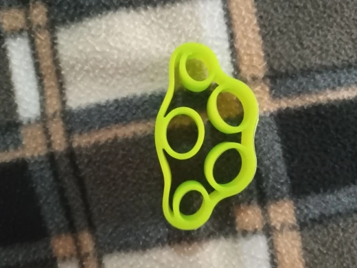 Удобный и доступный, он не занимает много места, он действительно тренирует пальцы при использовании, и приятно использовать с другими упражнениями!
