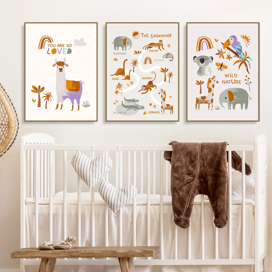 Скандинавская Картина на холсте настенные художественные принты и плакаты, альпака, животные, радуга, сафари, минималистичные картины для детей, декор детской комнаты