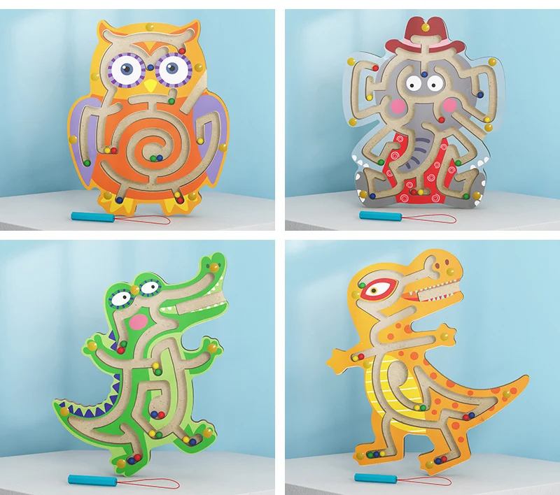 Детские Магнитный лабиринт, игрушка животных Монтессори деревянная ...