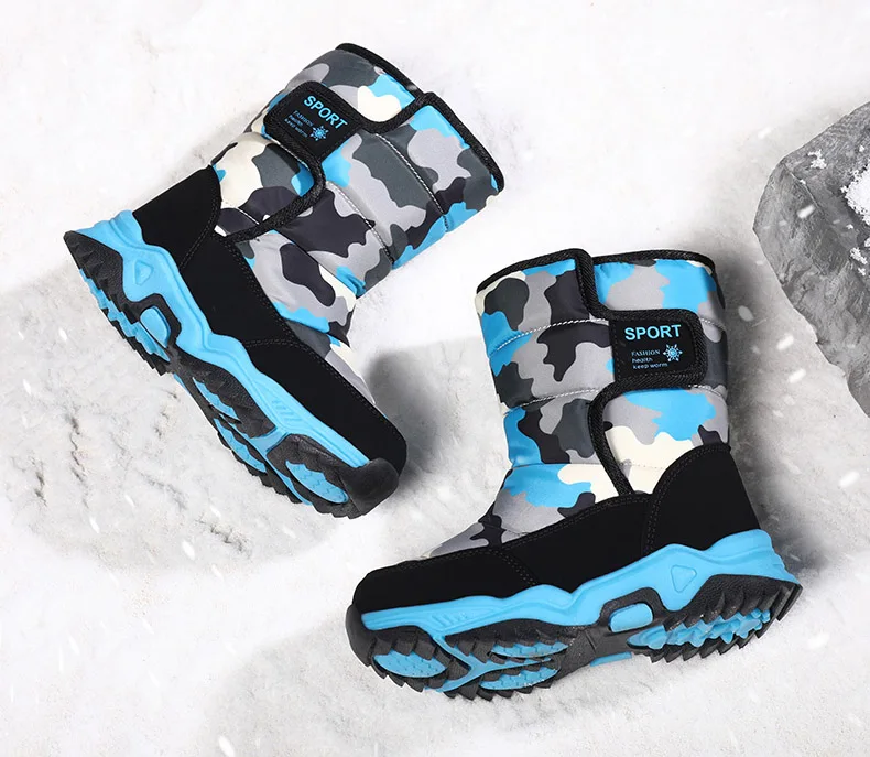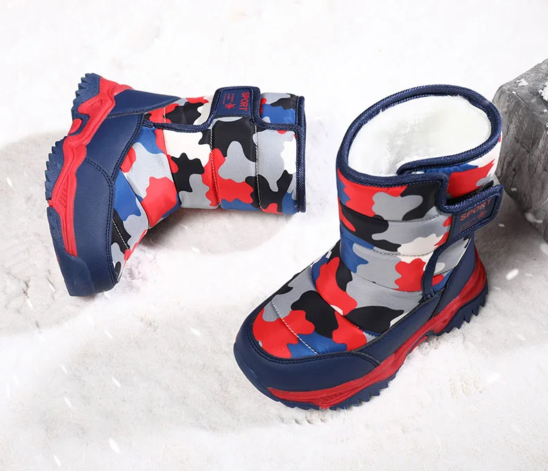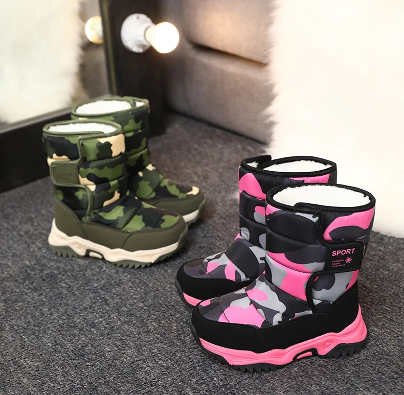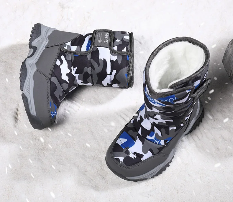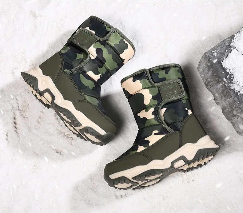 Детские зимние ботинки из флока камуфляжного цвета для мальчиков и ...