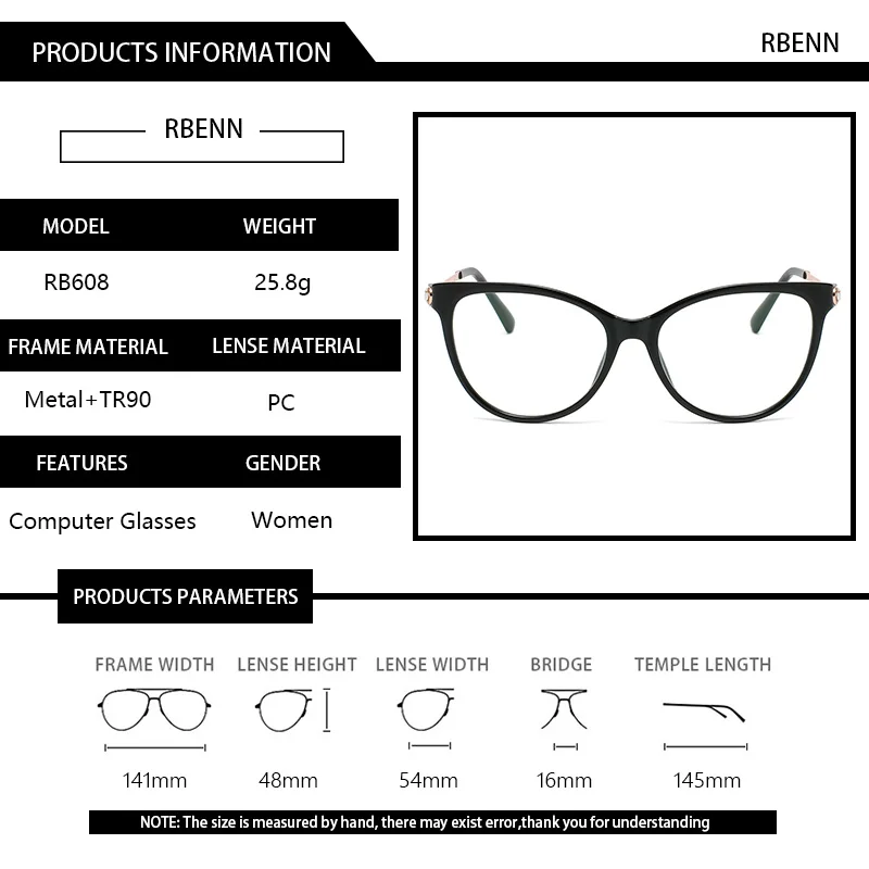 RBENN дизайн кошачий глаз компьютерные очки оправа Женский анти синий светильник TR90 очки синий светильник Блокировка оптических игровых очков