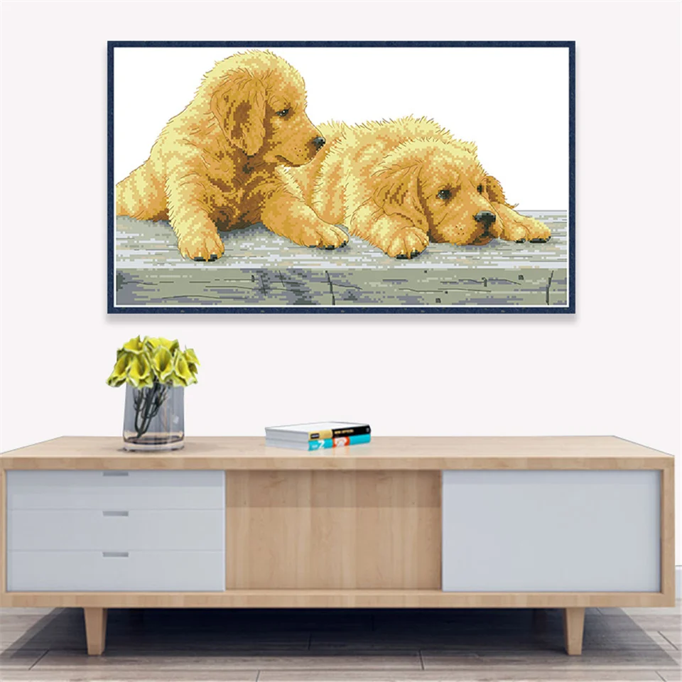 Набор золотистого ретривера для вышивки крестиком из ткани с принтом 11CT 14CT милые собаки Набор для вышивки рукоделия поделки своими руками домашний декор картины