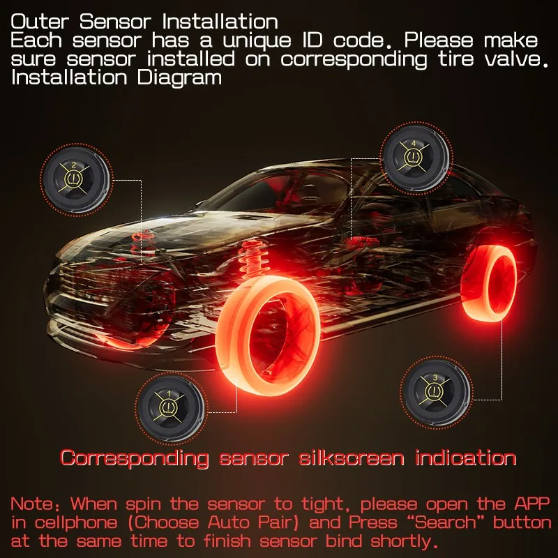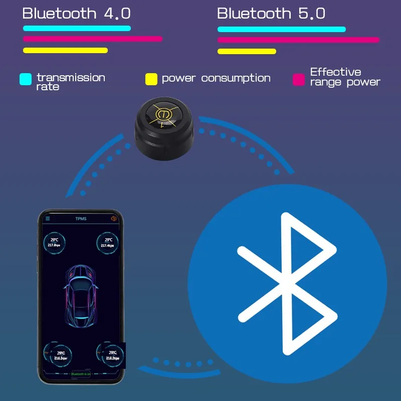Система контроля давления в шинах, Bluetooth 5,0, для iOS и Android
