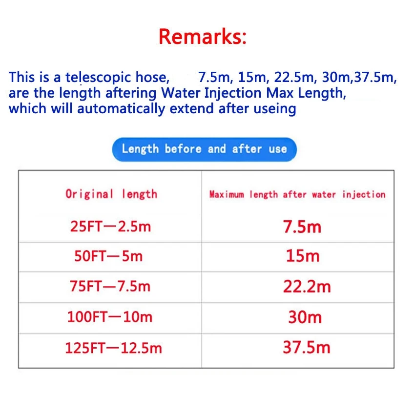 Описание:Название: 2021 Новое высокое давлениеЛатексный шлангВыдвижная Длина;25 футов = (7,5 метров после впрыска воды)50 футов (15 метров после впрыска воды),75 футов (22,5 метров после впрыска воды)100 футов (30 метров после впрыска воды),125 футов (37,5 метров после впрыска воды)150 футов (45 метров после впрыска воды),Оригинальная Длина: 25ft-2.5m, 50ft-5m, 75ft-7.5m , 100ft-10m, 125ft-12.5mМатериал шланга: трехслойная утолщенная латексная внутренняя трубка + латунный коннеторПримечания1: Все фотографии являются физическими фотографиями, прямые продажи с фабрики, могут быть настроены2: Поддержка Прямая поставка и оптовая продажа