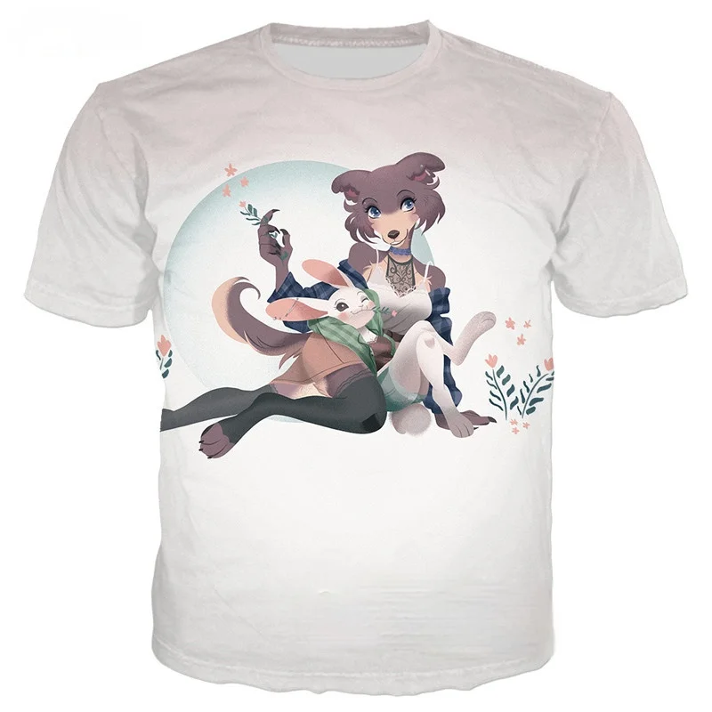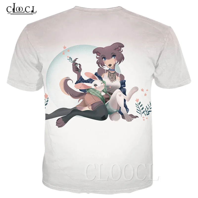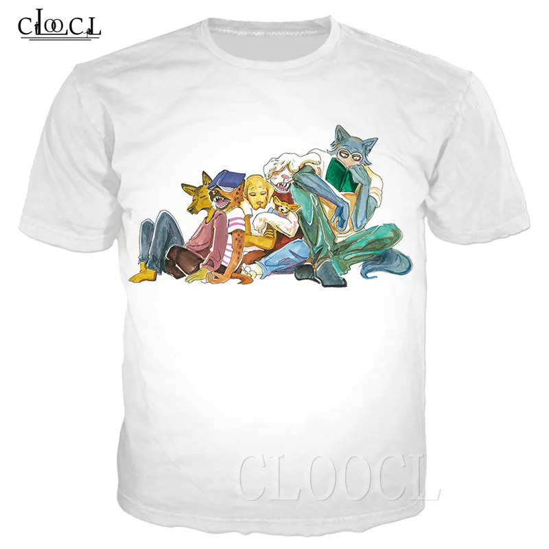 Футболка Мужскаяженская с рисунком аниме BEASTARS, повседневный топ в японском стиле комиксов с объемным рисунком животных, летняя уличная одежда, оверсайз