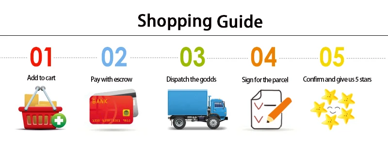 1. Пожалуйста, оставьте положительные отзывы и поставьте нам 5 звезд после получения товара. Если у вас есть какие-либо проблемы, просто свяжитесь с нами, пожалуйста, мы будем рады Вам помочь.2. Пожалуйста, отправьте нам сообщение, прежде чем оставить отрицательный отзывы или открыть спор, мы сделаем все возможное, чтобы решить проблему как можно скорее.3. Мы просто надеемся, что вы можете иметь счастливый опыт покупок в нашем магазине.Отгрузка:1. Товары отправляются только после подтверждения оплаты.2. Правильный подробный адрес должен быть показан при размещении заказа.3. Пожалуйста, свяжитесь с нами как можно скорее, если вы не получили посылка в течение 60 рабочих дней после доставки и позвольте нам несколько рабочих дней, чтобы проверить недоставленную посылка.Оплата:1. Пожалуйста, подтвердите цену и другие детали с поставщиком, прежде чем сделать платеж.2. Перед оплатой убедитесь, что вы прочитали все описание и выбрали свои любимые методы доставки.3. Если у вас есть какие-либо проблемы, просто свяжитесь с нами, пожалуйста, мы сделаем все возможное, чтобы помочь вам.