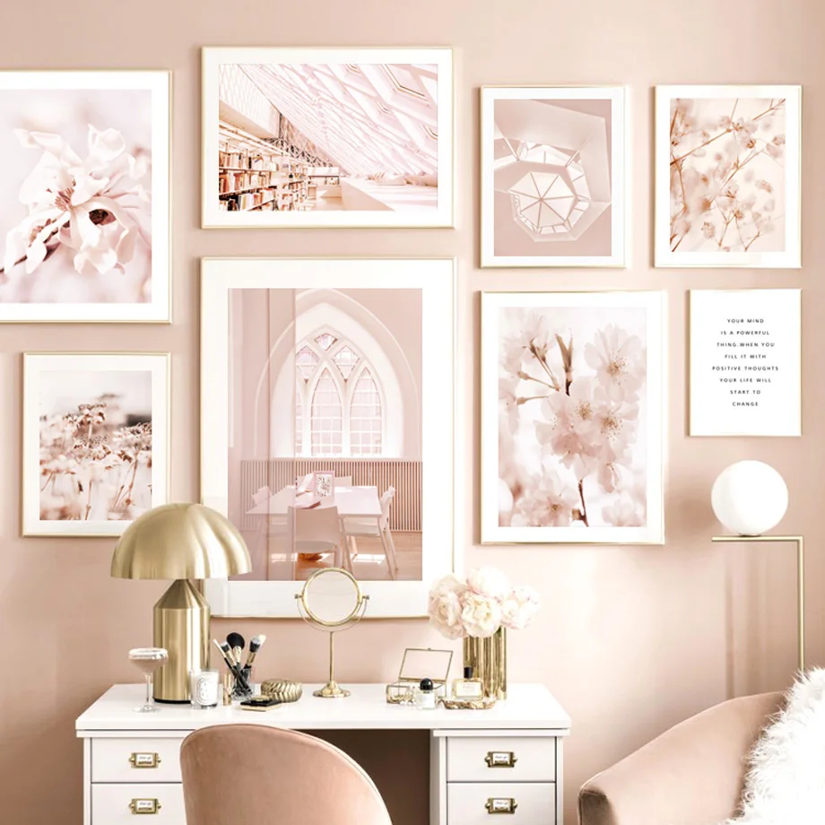 Розовая Роза Пион Дейзи Лилия персик цветок стены искусства холст ж...